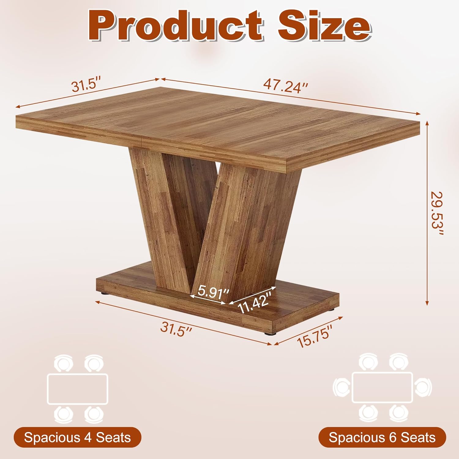 47 Inch Dining Table for 4, Farmhouse Dinner Table Wooden Kitchen Tables with Heavy Duty Pedestal for Dining Room, Kitchen, Living Room, Walnut Brown