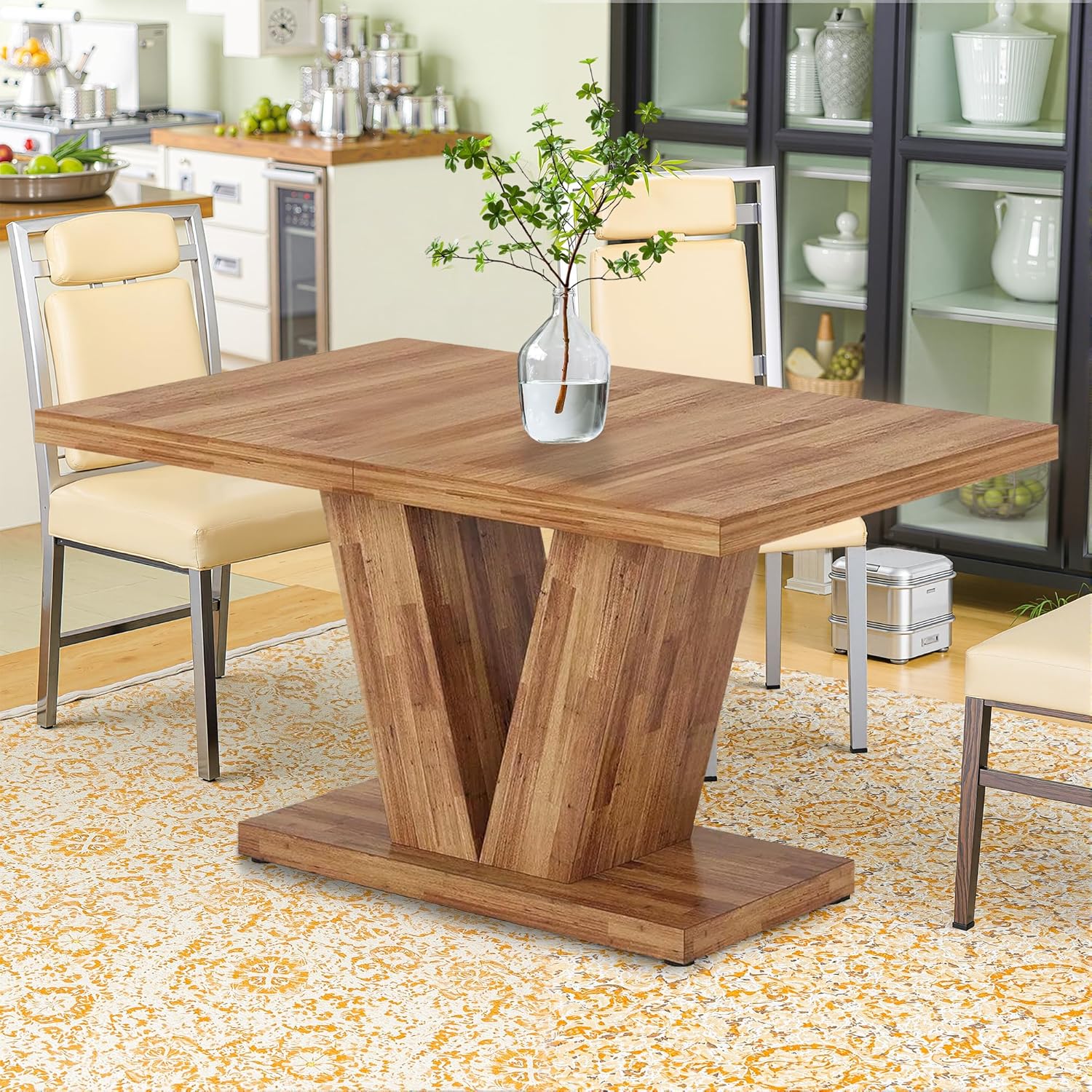 - Modern Farmhouse Style: This dining room table has simple lines that outline an elegant contour. The wooden texture tabletop exudes a natural atmosphere, and the V-shaped base adds a retro charm, injecting a warm and rustic country style into the restaurant.
