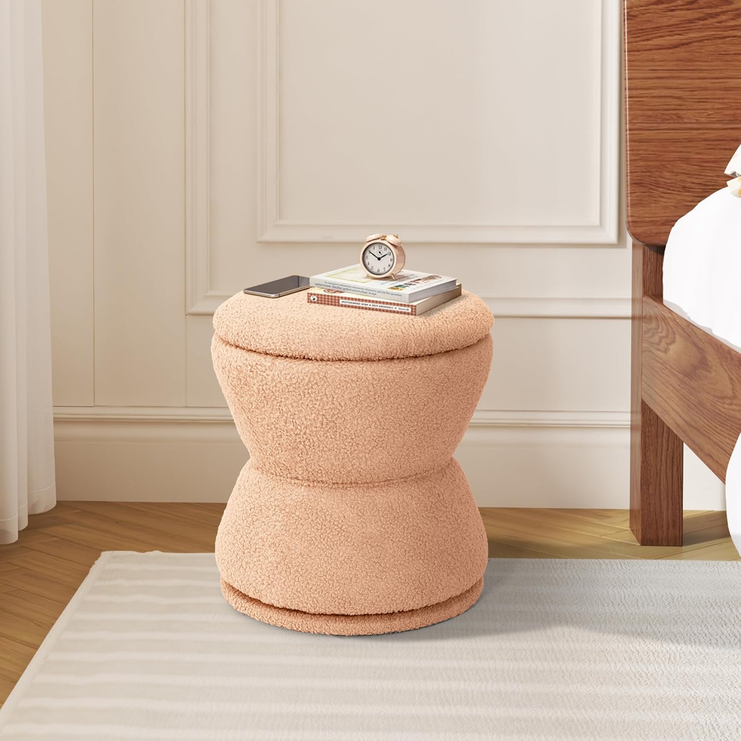 360 ° Swivel Storage Ottoman, Boucle Ottoman Vanity Stool, Upholstered Footstool with Storage Removable Lid, Modern Round Boucle Footrest Coffee Table for Living Room, Dorm, Makeup Room, Coral