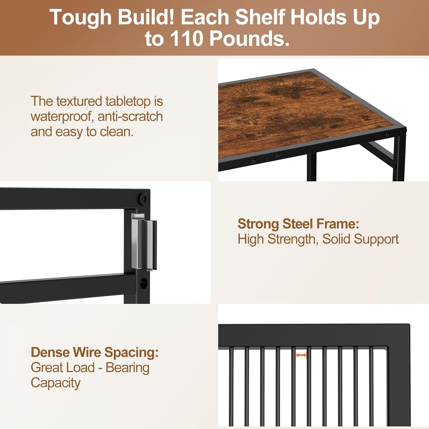 - 【Built to Last: 110 - lb Capacity per Shelf】Our XIVIRACK kitchen cart is crafted from high-quality materials. The engineered wood top is waterproof, scratch - proof, and a breeze to clean. The sturdy steel frame ensures reliable support. It can easily hold heavy appliances like microwaves and air fryers, promising long - term durability for everyday use.
