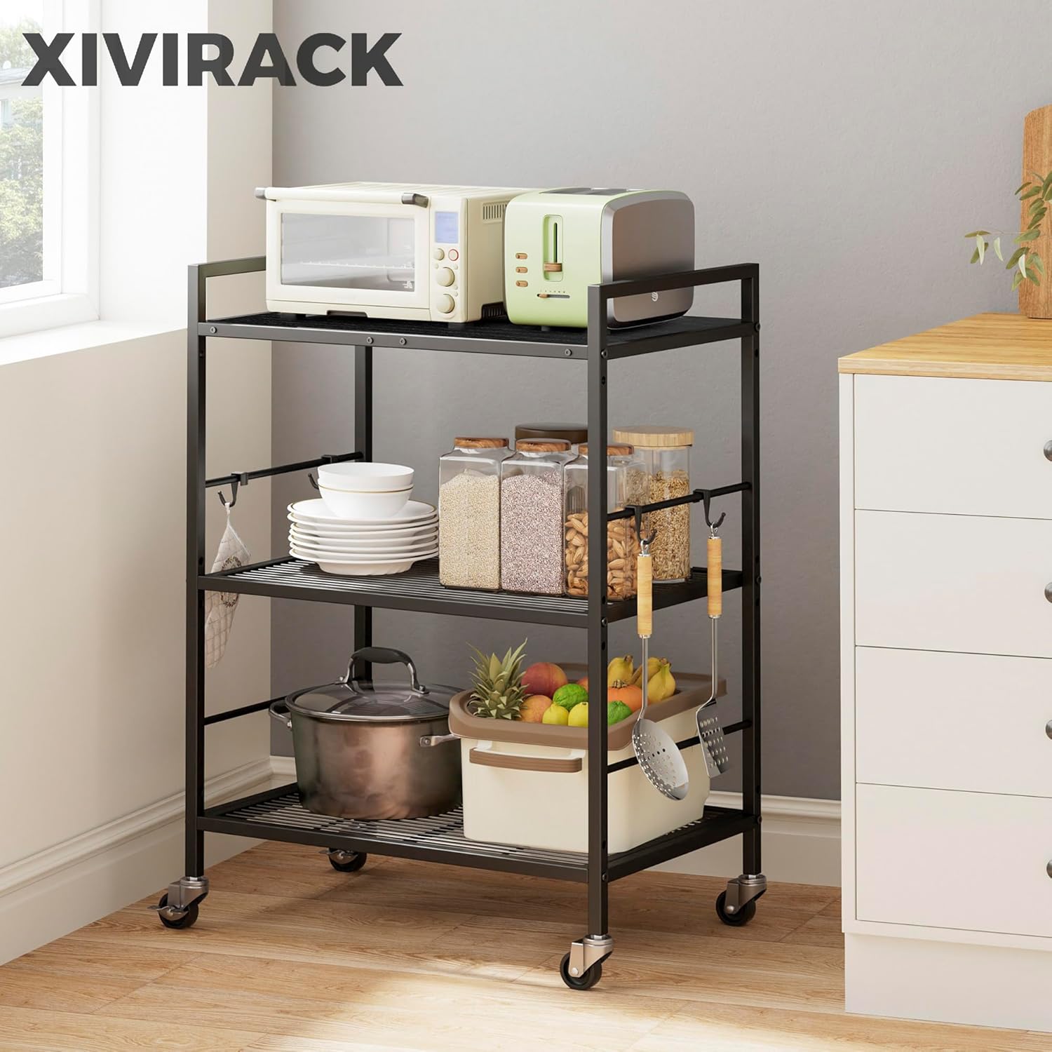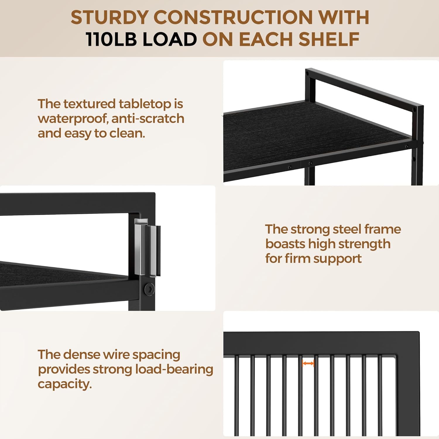 - 【Sturdy Construction With 110lb Load On Each Shelf】XIVIRACK kitchen storage rack organizer are made high quality materials.The textured engineered wood tabletop is waterproof, anti-scratch and easy to clean.The strong steel frame boasts high strength for firm support.The dense wire spacing provides strong load-bearing capacity.
