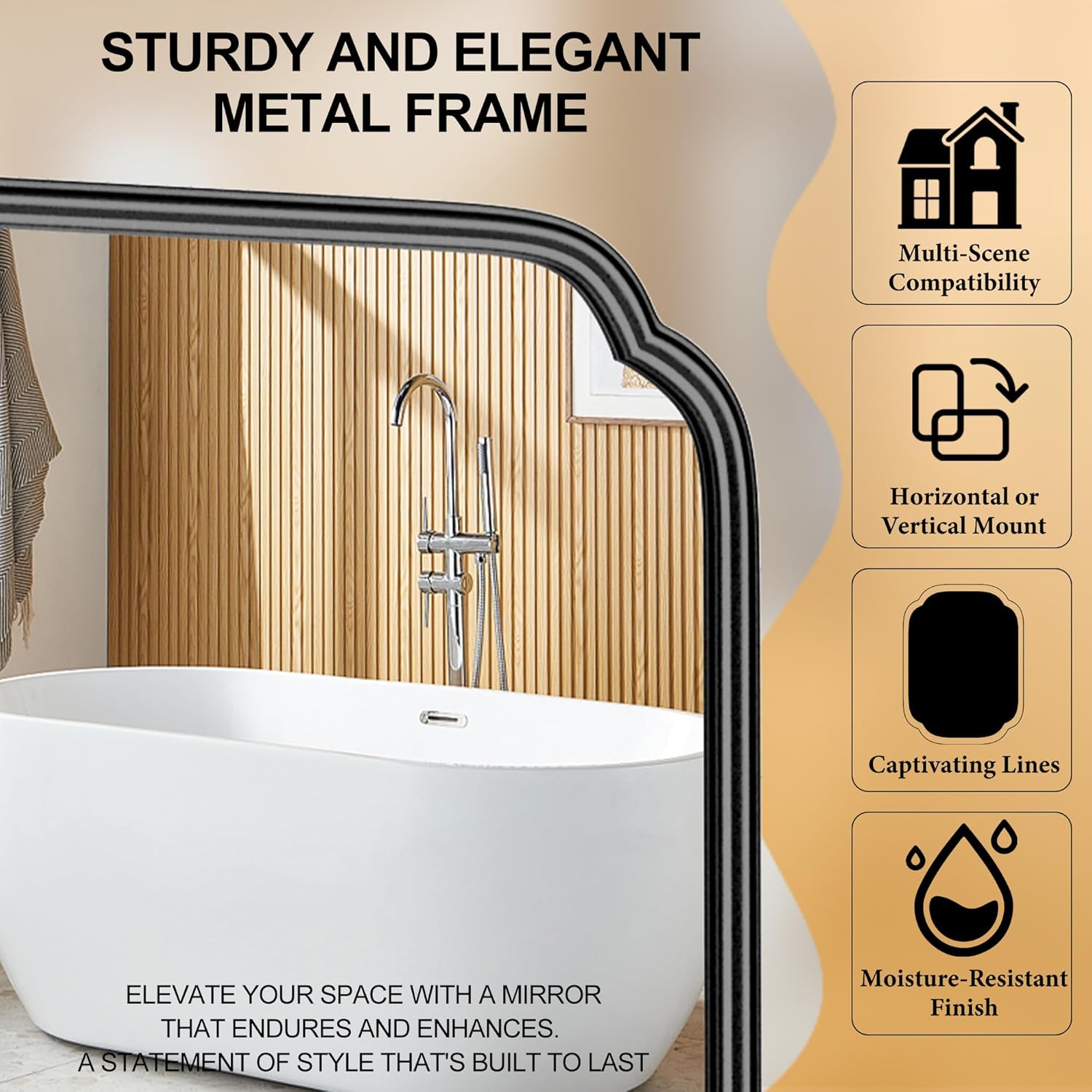 - 【A Unique Elegant-Looking Mirror 】:The black bathroom mirror, overall design and the sleekness of the curves in the frame and it adds a classiness as opposed to a boring straight square mirror. A very versatile mirror that will raise the level of decor anywhere in the house. The rounded corners mirror is classic and will never go out of style