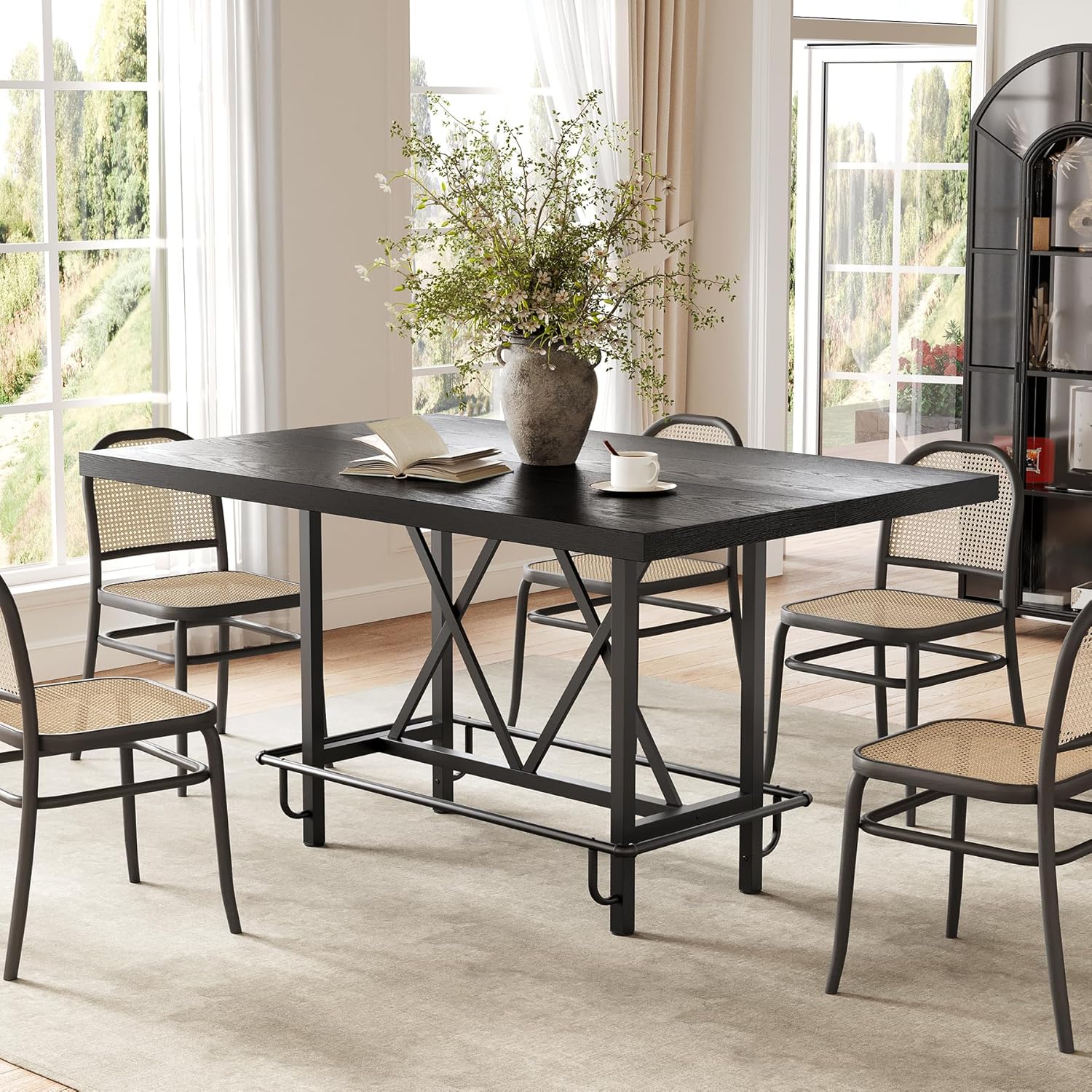LITTLE TREE 63-Inch Industrial Bar Table with Metal Footrest, Counter Height Pub Table for Kitchen, Home Bar & Entertaining (Black)