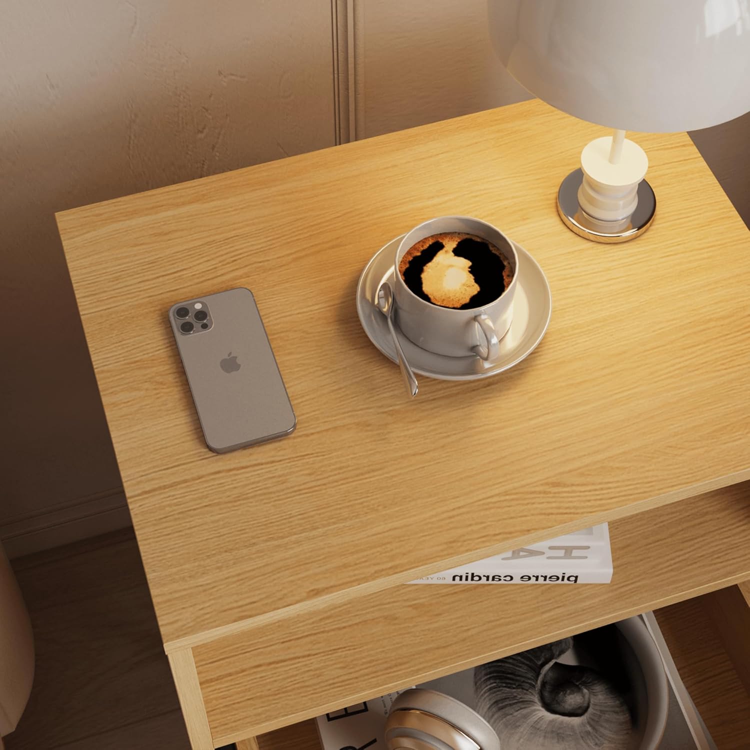 - Small Side Table for Small Spaces:This nightstand is small but has a lot of space,with two storage drawers and open wood shelf that provides a perfect storage space for your remote control, glasses, medicines and other essentials close at hand. The wide top is perfect for displaying a lamp, clock, potted plant or photo frame to offer warmth and personalized decoration.