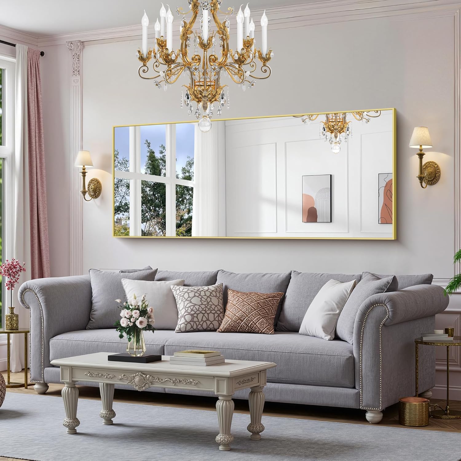 YIROMAN Bathroom Mirror 72"x30", Large Brushed Gold Bathroom Mirror for Over Sink with Aluminum Frame, Rectangular Vanity Mirror with Right Angle, Wall Mirror Hangs Horizontal or Vertical