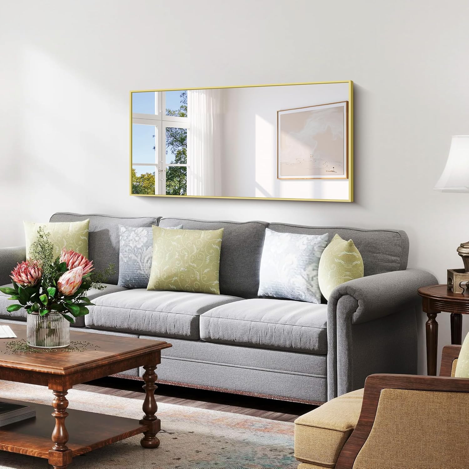 YIROMAN Bathroom Mirror 48"x24", Large Brushed Gold Bathroom Mirror for Over Sink with Aluminum Frame, Rectangular Vanity Mirror with Right Angle, Wall Mirror Hangs Horizontal or Vertical