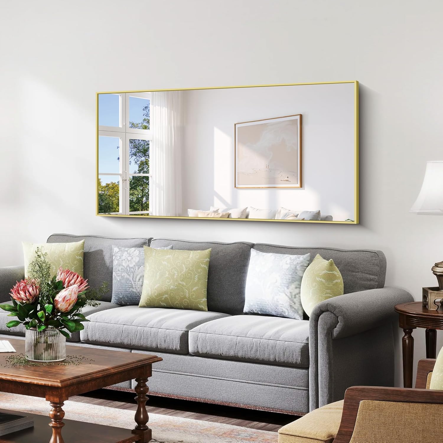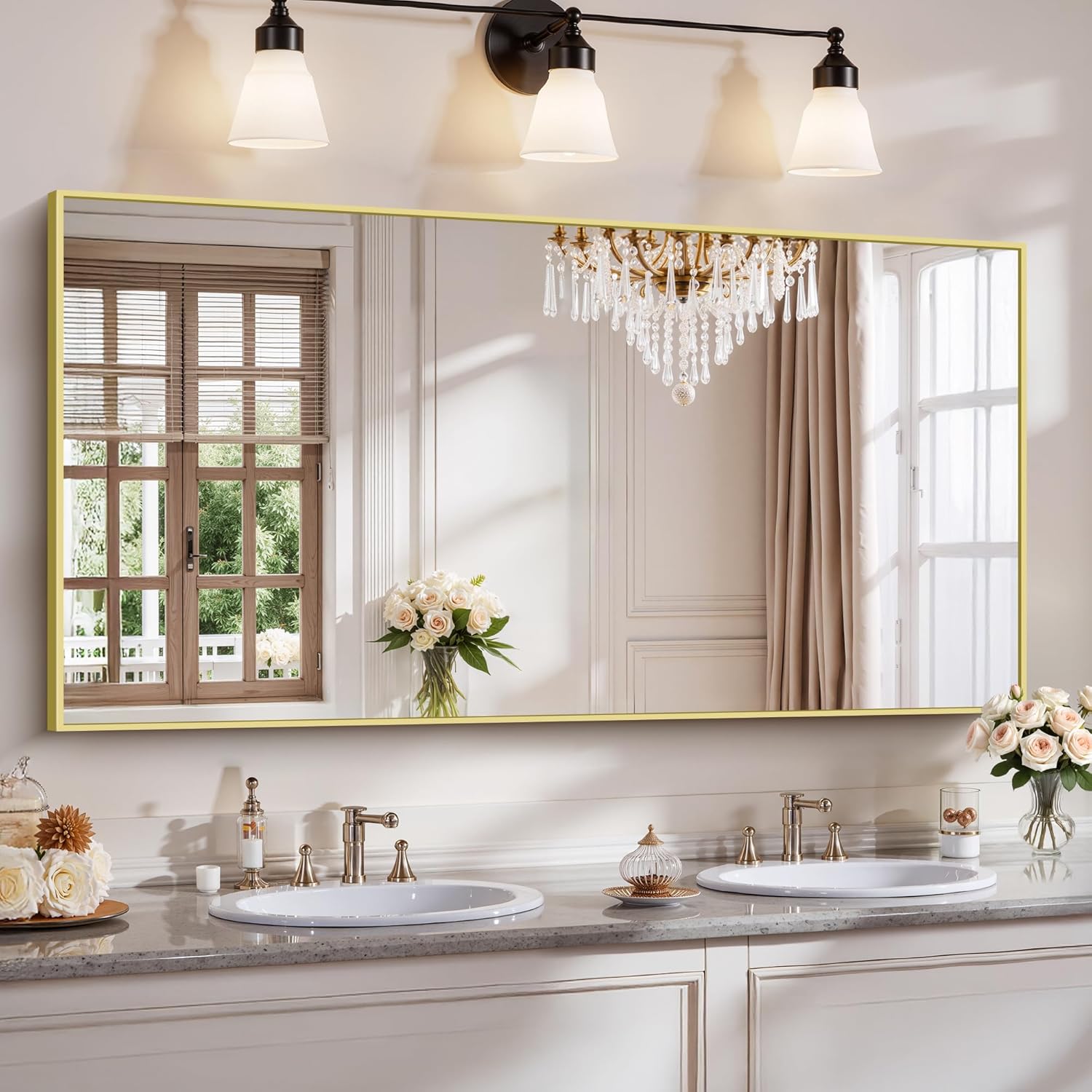 YIROMAN Bathroom Mirror 60"x30", Large Brushed Gold Bathroom Mirror for Over Sink with Aluminum Frame, Rectangular Vanity Mirror with Right Angle, Wall Mirror Hangs Horizontal or Vertical