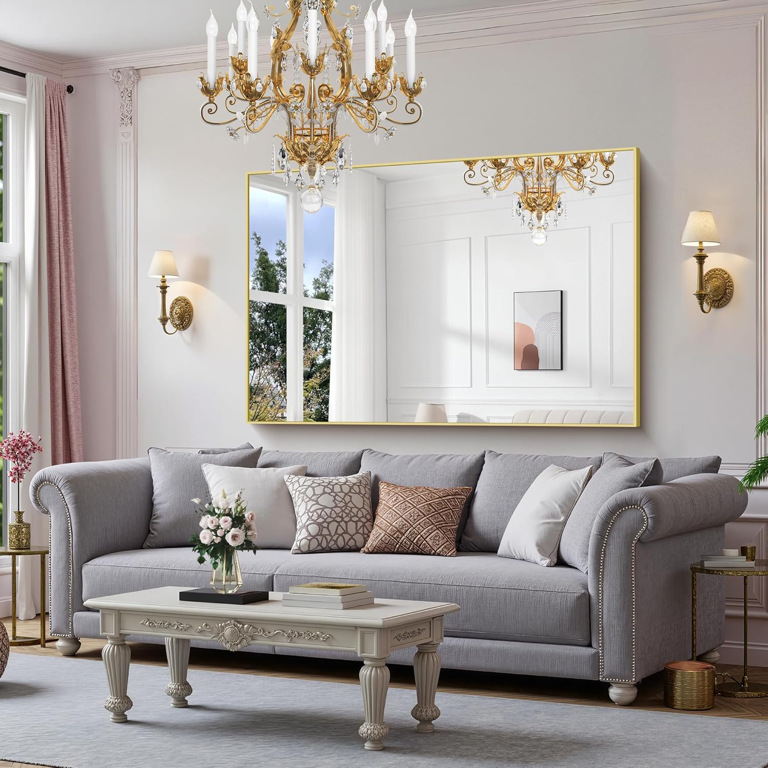 YIROMAN Bathroom Mirror 60"x40", Large Brushed Gold Bathroom Mirror for Over Sink with Aluminum Frame, Rectangular Vanity Mirror with Right Angle, Wall Mirror Hangs Horizontal or Vertical