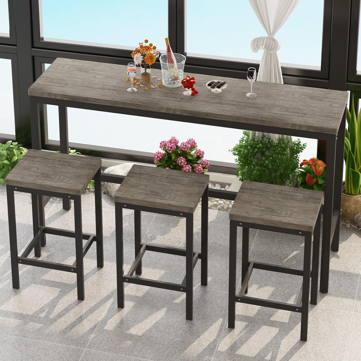- 【Versatile for Any Occasion】Whether you're enjoying a casual breakfast, hosting a dinner party, or relaxing with friends, this versatile high top table and chairs set adapts to any setting. Its compact design fits perfectly in kitchens, living rooms, or party areas, offering both functionality and style.