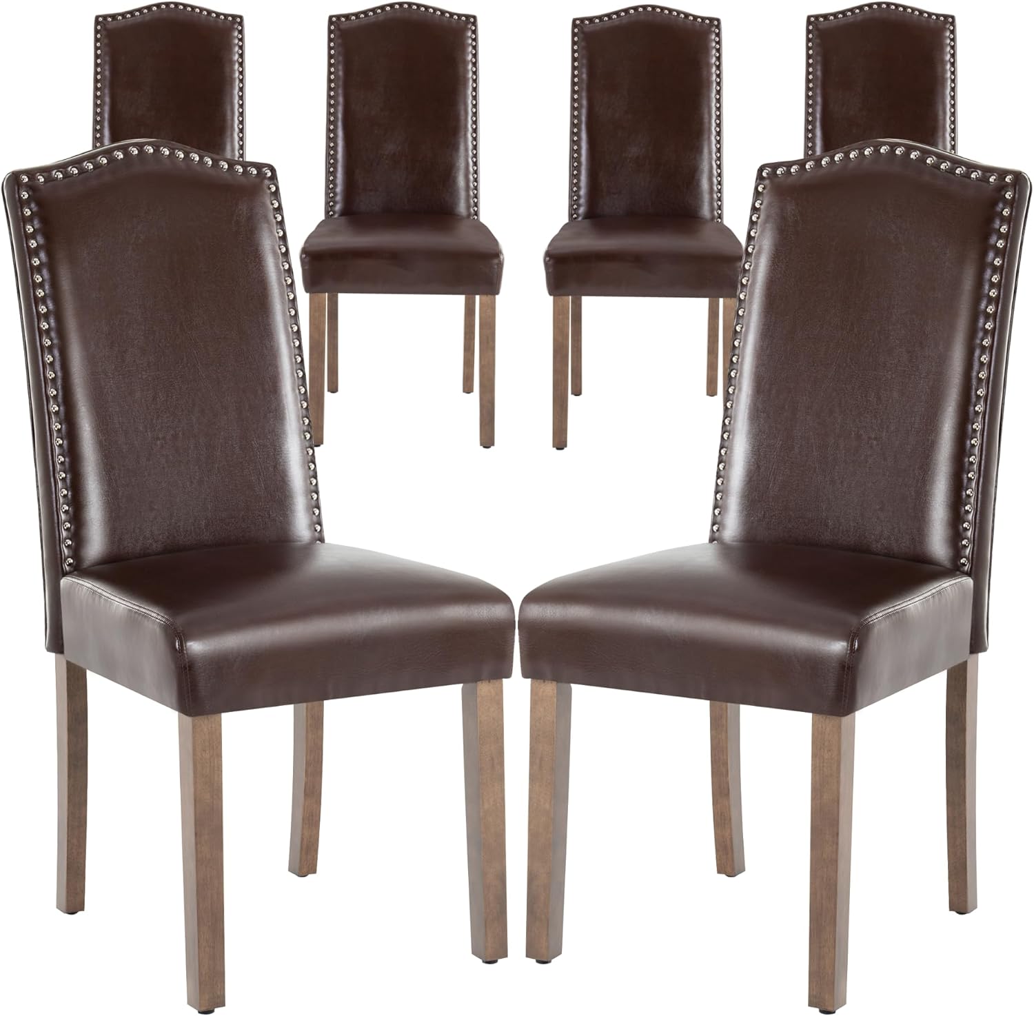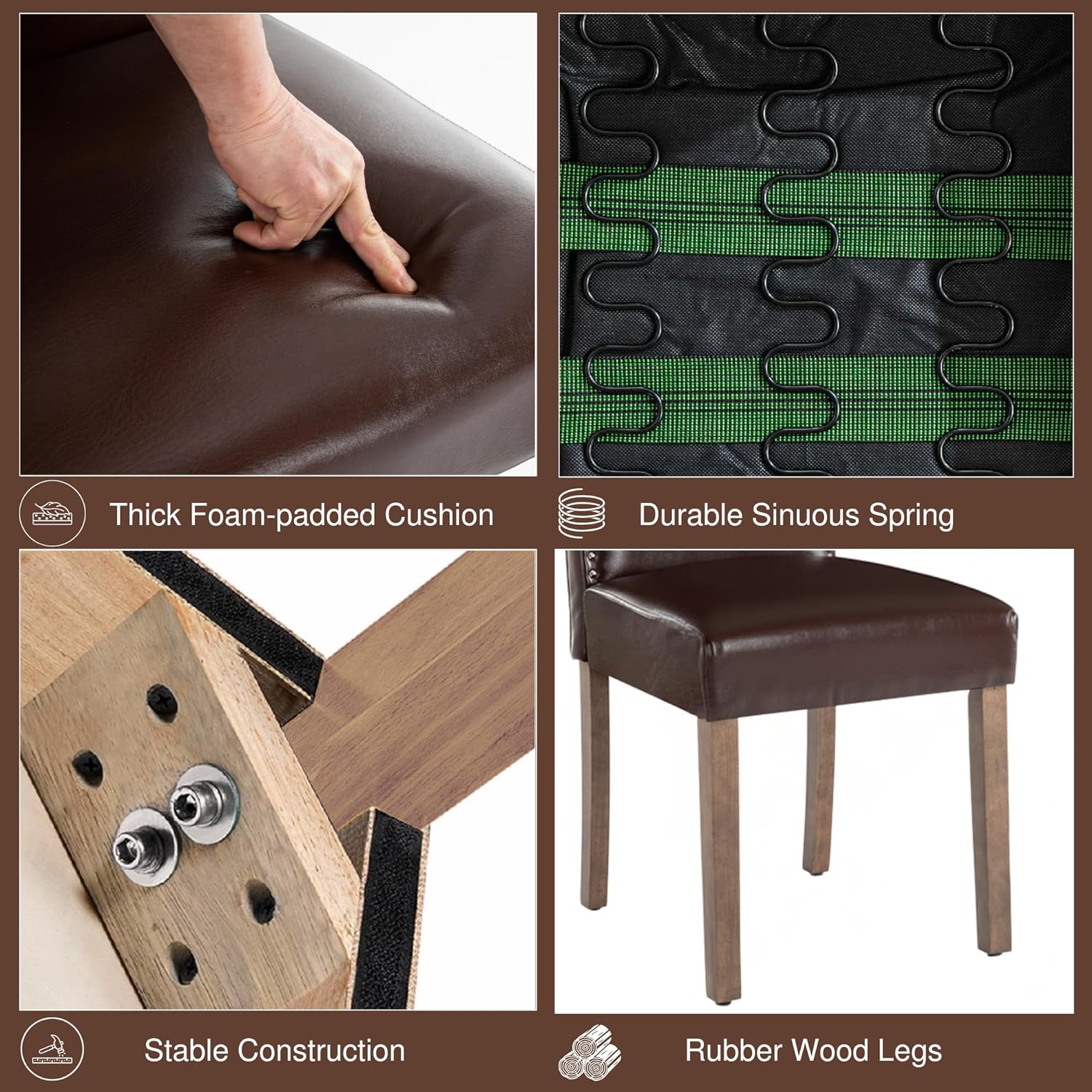 Stylish Upholstered Parsons Dining Chair PU Faux Leather with Silver Nailhead Trim and Sturdy Solid Wood Legs