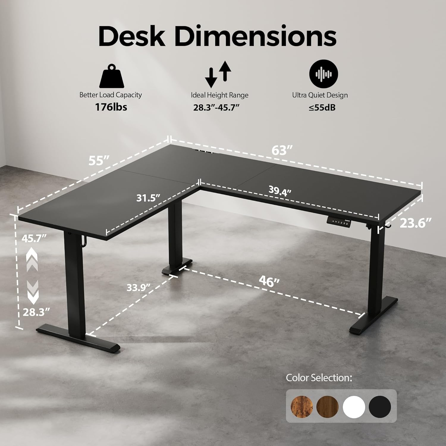 - 【Spacious Working Space】With a spacious 63" x 55" L-shaped design, this desk provides plenty of room for dual monitors, important documents, and all your essentials. Perfect for multitasking and staying organized throughout your day.