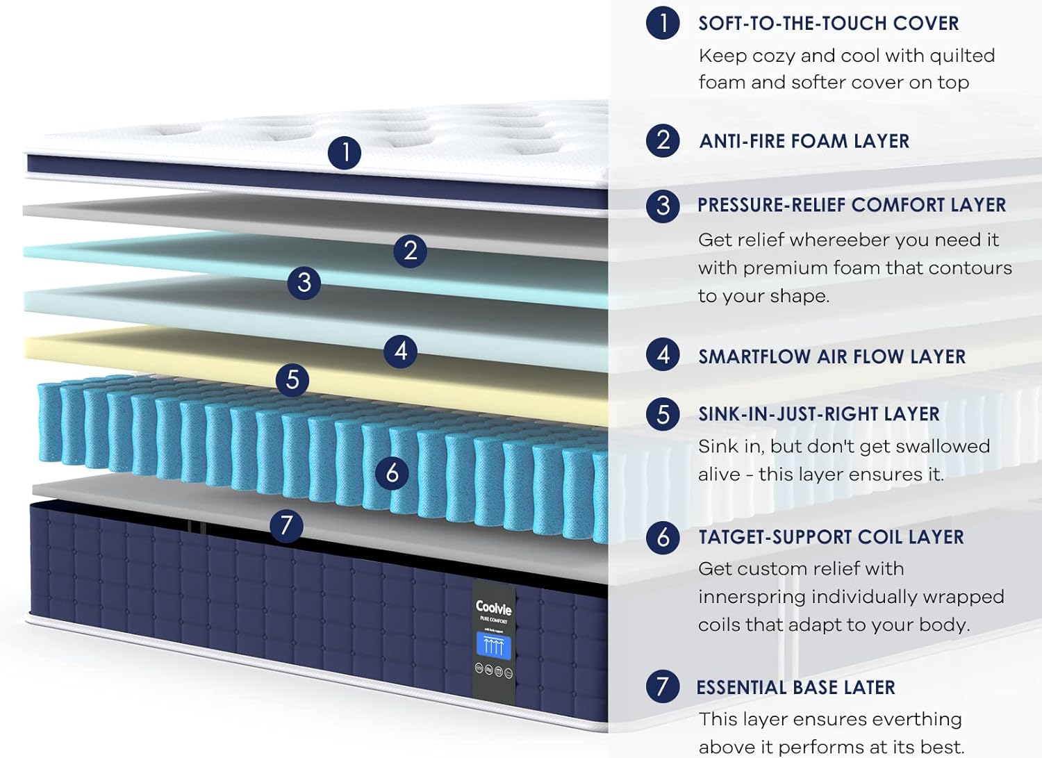 - Say Goodbye to Stuffy Heat-Coolvie hybrid California king memory foam mattres features gel-infused memory foam that actively absorbs body heat to create a cooling layer, combined with a bottom layer of 3D breathable coils that accelerate air circulation. This dual cooling system delivers long-lasting comfort, with tests showing the sleep surface temperature is 2-3°C lower than ordinary mattresses