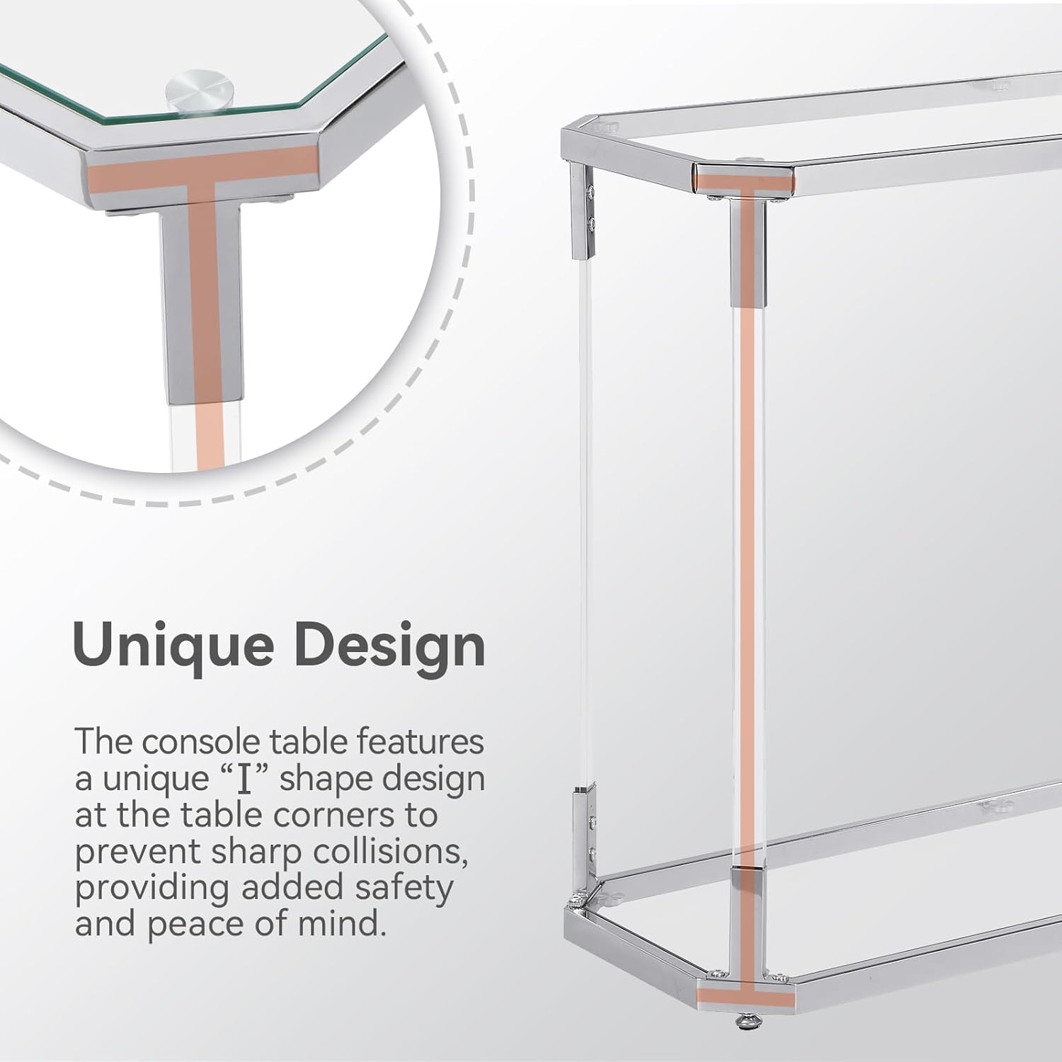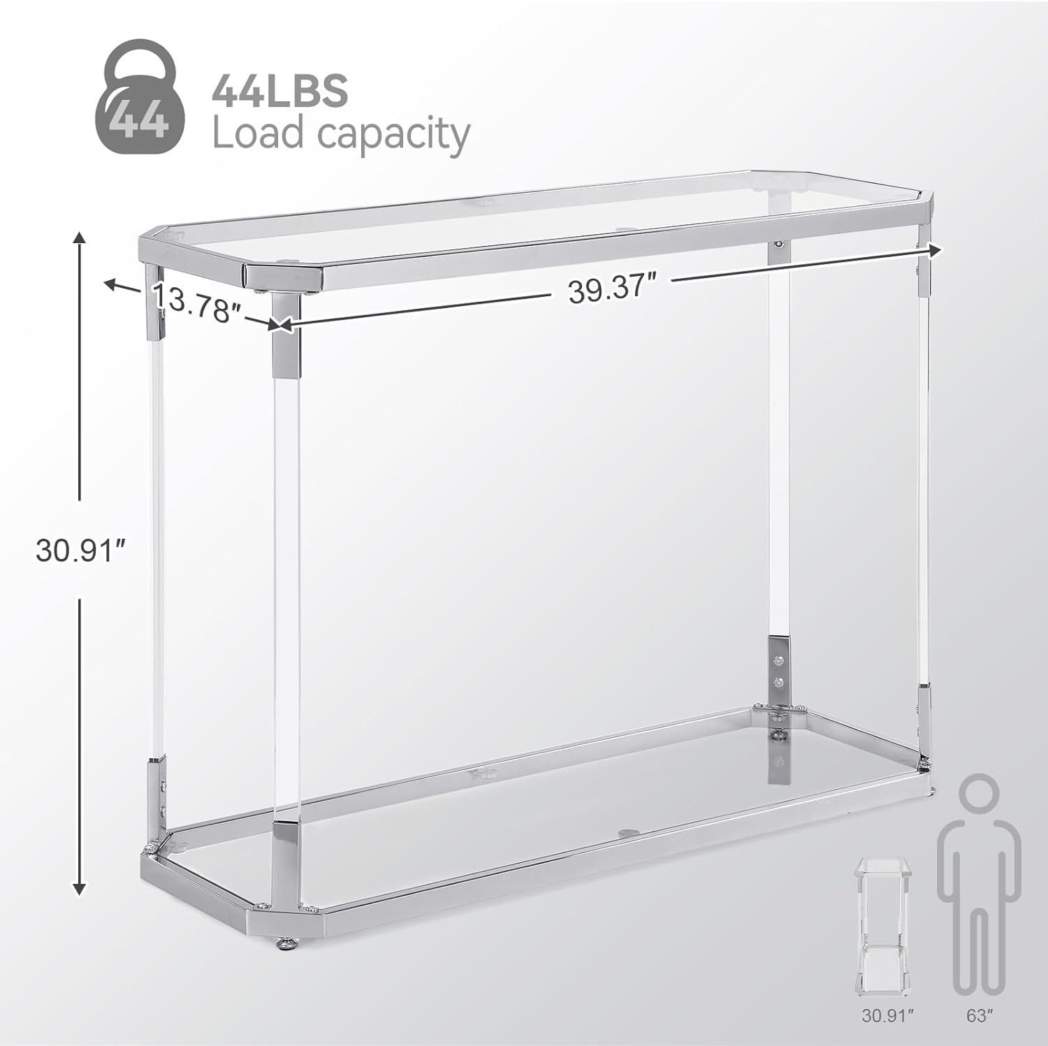 - Quality Material:Coffee table 2 tiers table top with ultra-clear tempered glass, coffee table legs with chrome-plated metal and acrylic material, not easy to deformation, not easy to scratch, simple and durable.