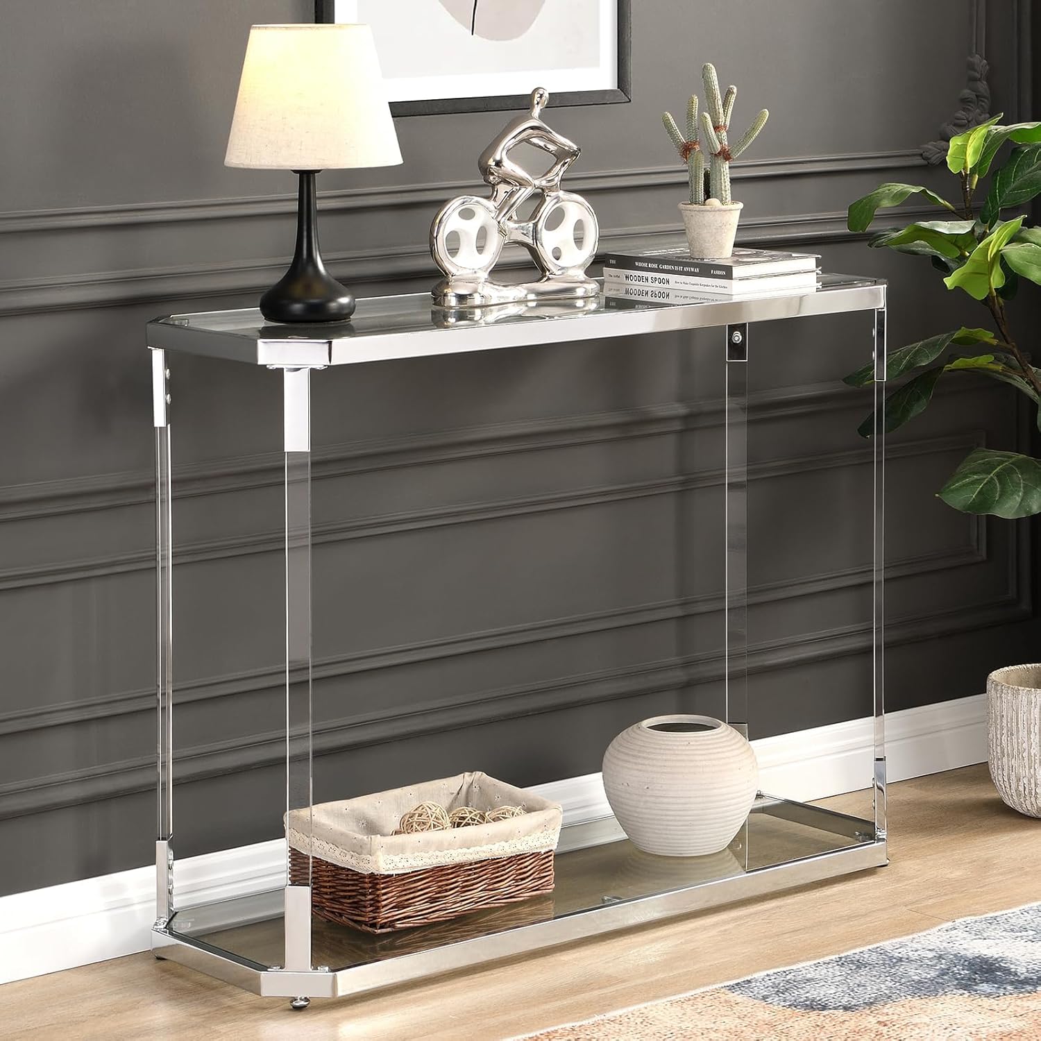 Glass Coffee Table, Clear Coffee Table with 2 Tiers, Acrylic Leg, Chrome Frame, Rectangular Center Table for Living Room (AST2017)