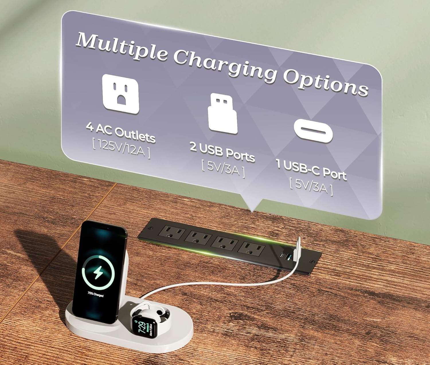 - 【Built-In Charging Station】This bedroom tv stand doubles as a power station with 2 AC outlets, 2 USB ports, and a Type-C port. Perfectly placed for your TV, speakers, gaming systems, or bedside gadgets, keeping everything charged and within reach. With 70.9 inch long desktop, it can support 75, 80 inches TV