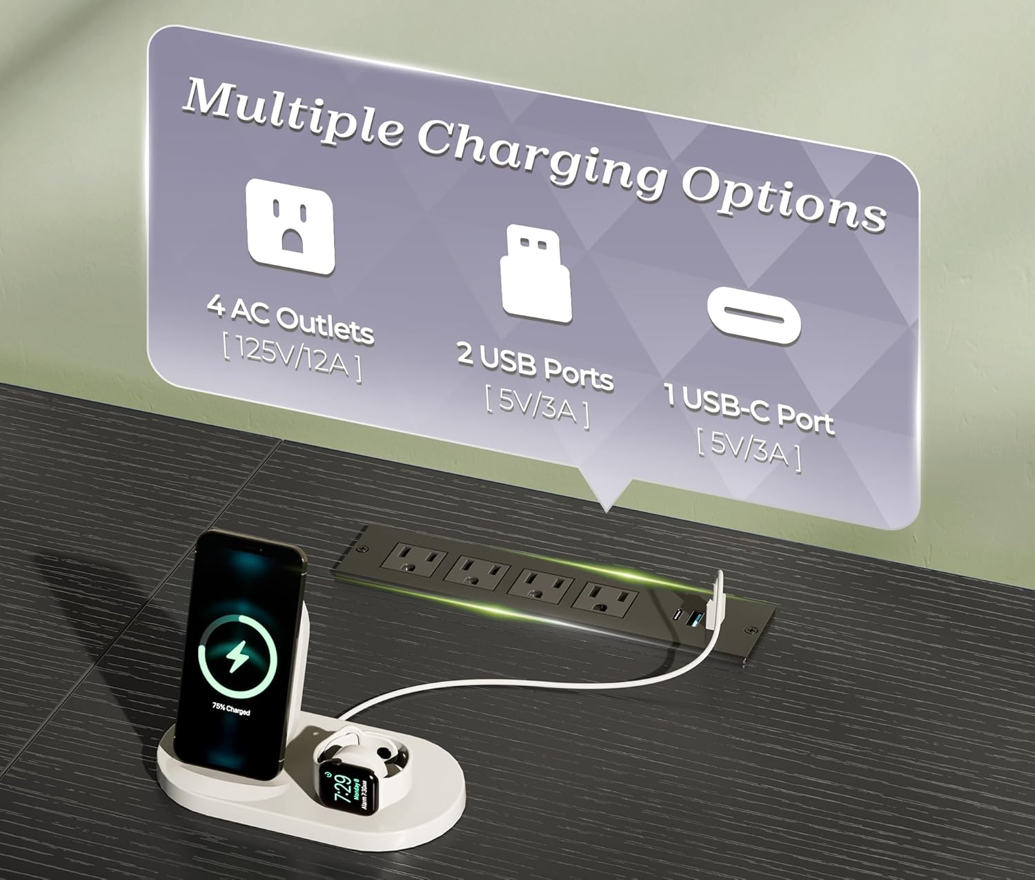 - 【Built-In Charging Station】This bedroom tv stand doubles as a power station with 2 AC outlets, 2 USB ports, and a Type-C port. Perfectly placed for your TV, speakers, gaming systems, or bedside gadgets, keeping everything charged and within reach. With 70.9 inch long desktop, it can support 75, 80 inches TV