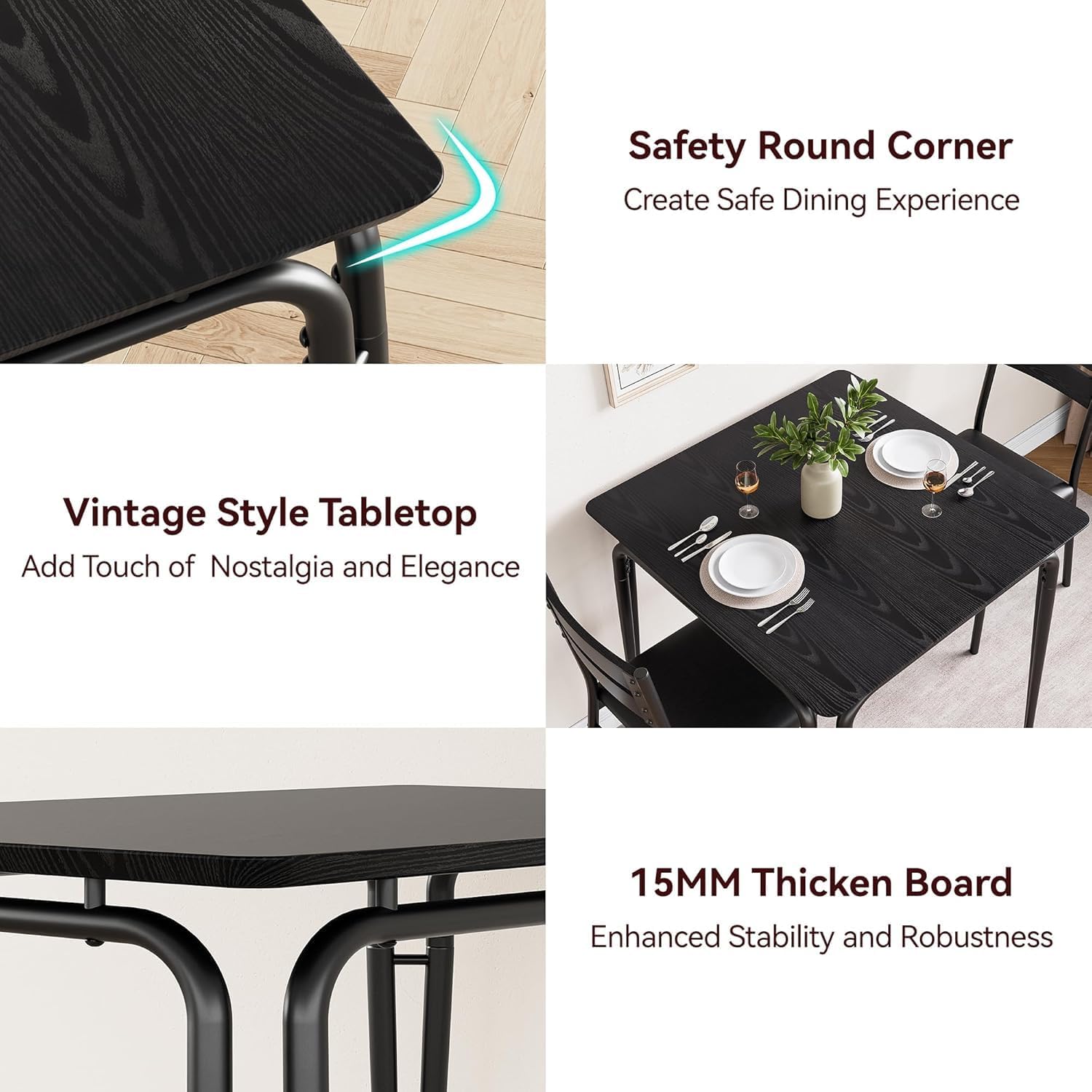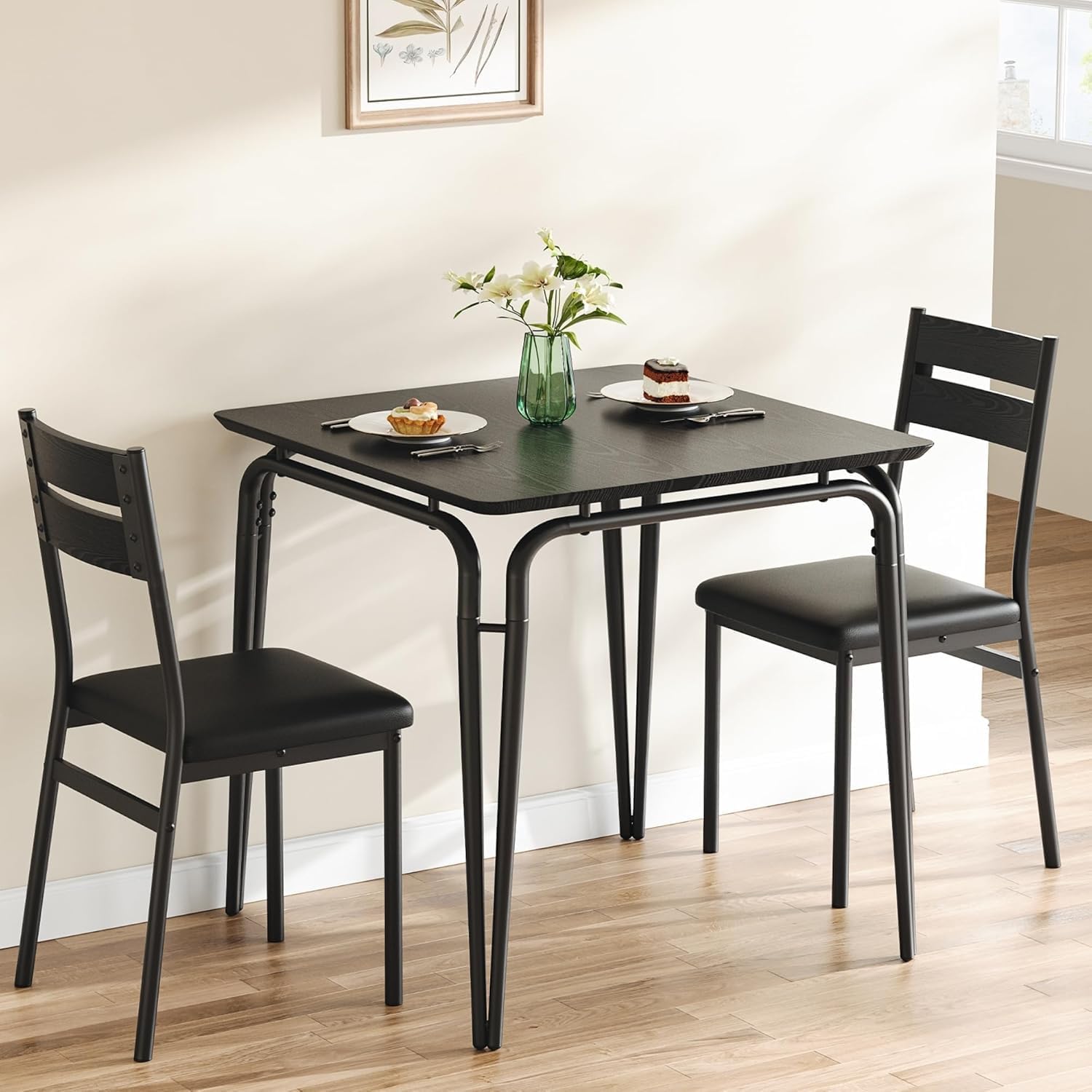 Dining Table Set for 2, Space-Saving Square 3-Piece Dinette with 2 Chairs, Modern Kitchen Furniture for Small Spaces & Apartments