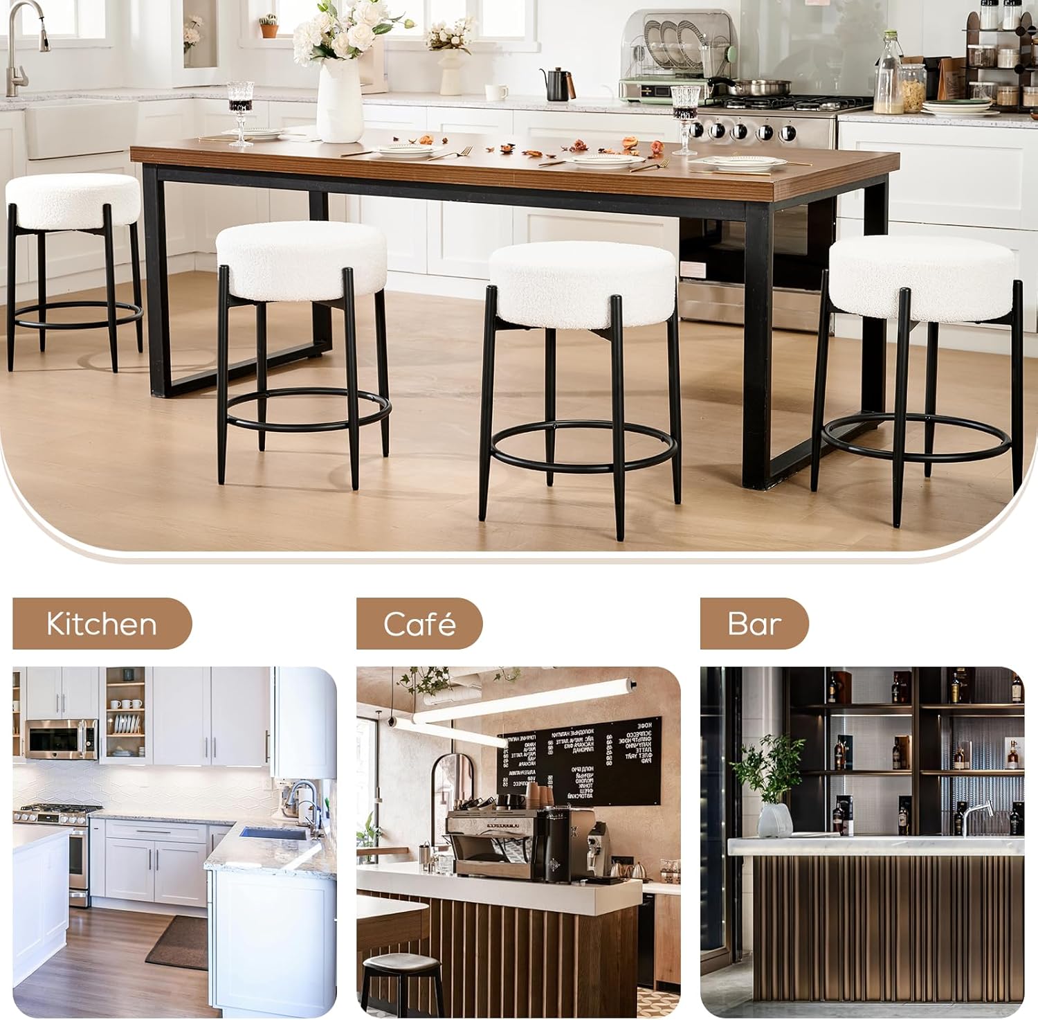 - Modern Style: The backless kitchen height stools silhouette embodies timeless modern aesthetics. Non-slip pads on the bottom of the stool legs ensure a secure hold during use and prevent scratches on floor surfaces, blending elegant aesthetics with everyday practicality