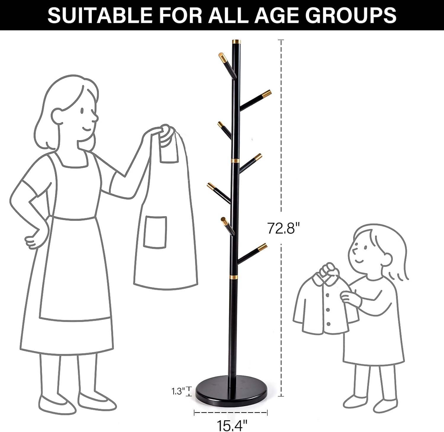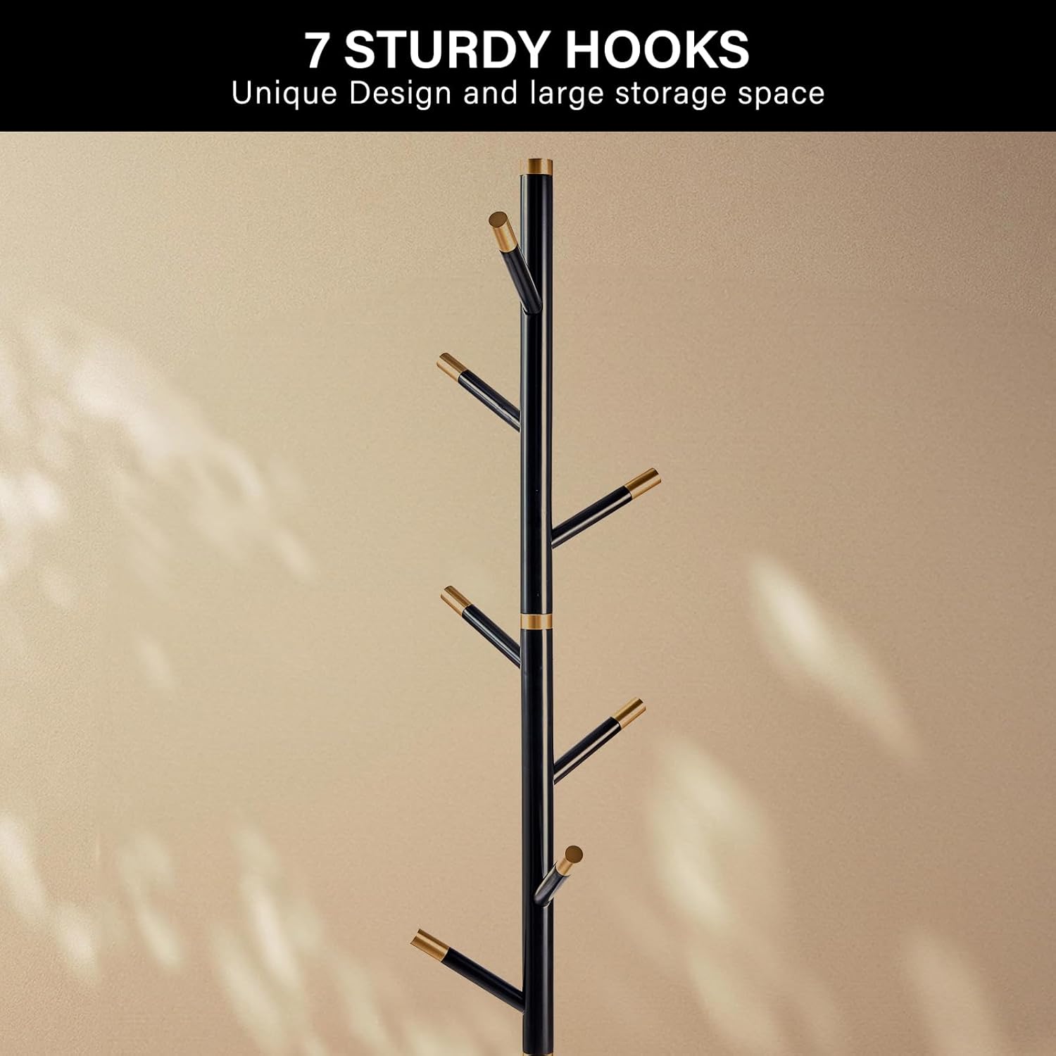 CozyDH Black Coat Rack Freestanding Solid Wood Coat Rack Stand, Coat Tree Freestanding with 7 Hooks Creative Tree Branch-look for Entryway, Hallway, Bedroom