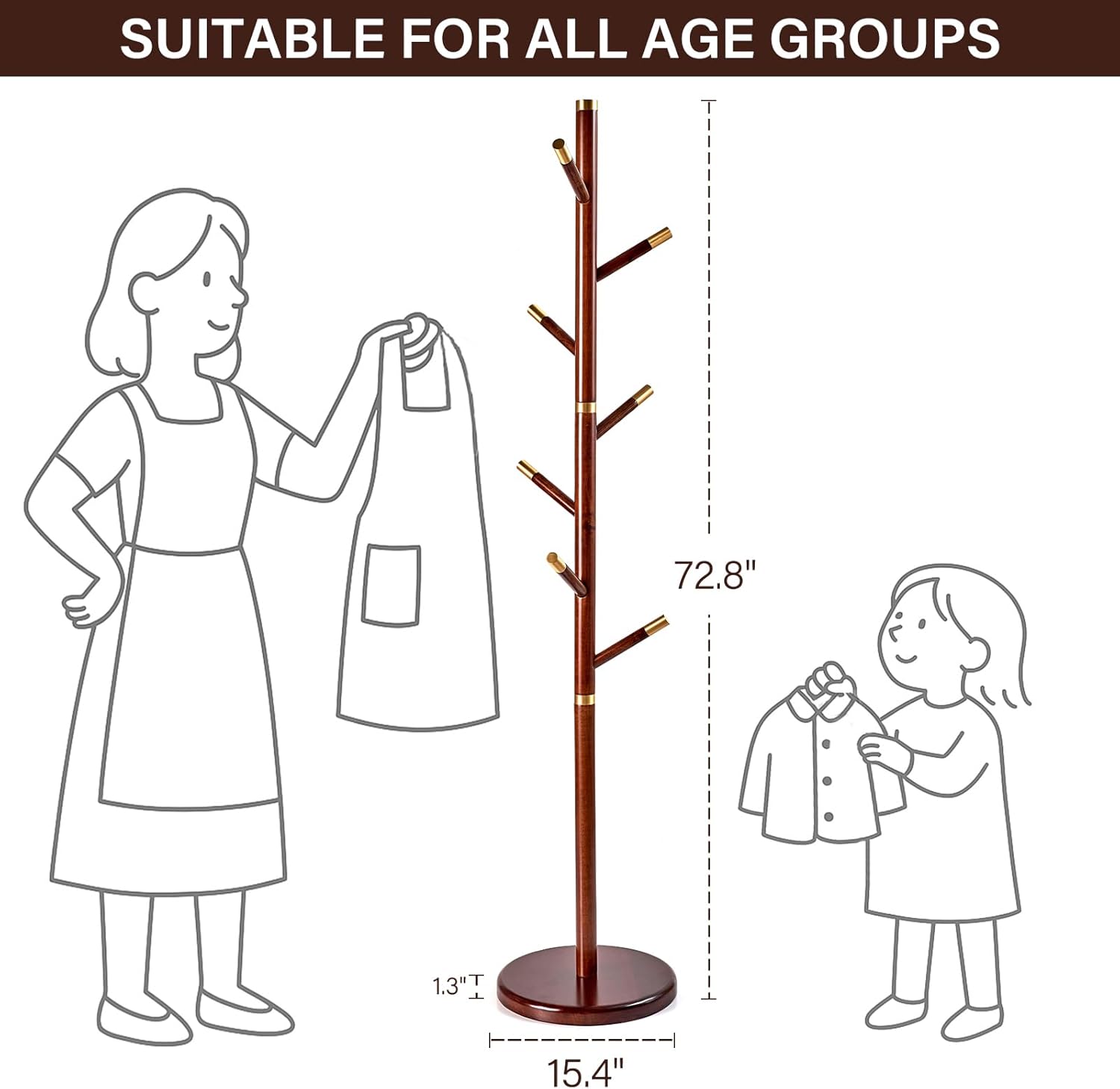 CozyDH Coat Rack Freestanding Solid Wood Coat Rack Stand, Coat Tree Freestanding with 7 Hooks Creative Tree Branch-look for Entryway, Hallway, Bedroom (Walnut)