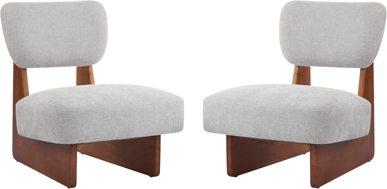 Christopher Knight Home Mores Low Profile Accent Chair Set of 2, Modern Living Room Armless Lounge Chair, Fabric Comfy Reading Chair for Bedroom, Wooden Frame and Thick Padded Seat, Walnut+Gray