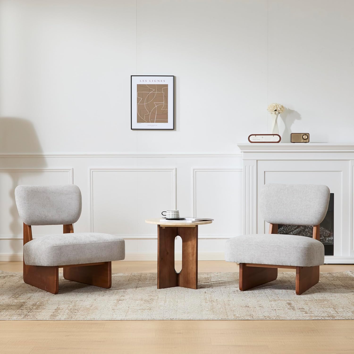 - Solid Wood Living Room Accent Chair Set of 2: Crafted with a durable solid wood frame and base, this armless chair is built to provide long-lasting stability and strength. The natural wood finish complements the minimalist design, adding a touch of warmth and sophistication to any indoor space