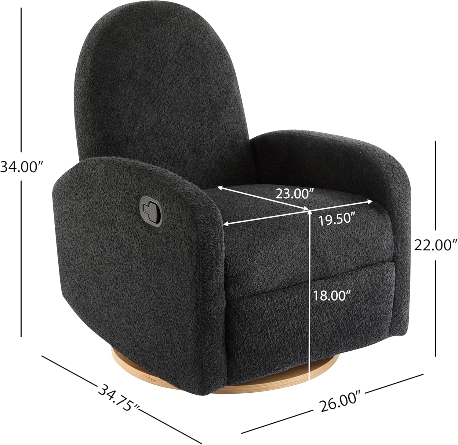 Christopher Knight Home Sidney Fabric Upholstered 360° Swivel Chair, Boucle Push-Back Recliner, Solid Wood Glider Recliner with Rotation, Living Room Lounge Sofa, Adjustable Comfy Reading Chair,Black