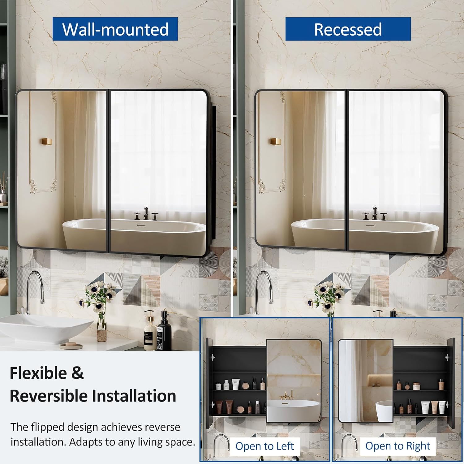 - Flexible Installation for Better Adaptability - The medicine cabinets for bathroom supports recessed and wall-mounted installation, which provides flexibility to match your bathroom layout and design. The cabinet can achieve 180° reverse installation thus adapts to any living space. (*the specific cutout size is not equal to the mirror size, please measure the cabinet size before selecting a recessed installation).