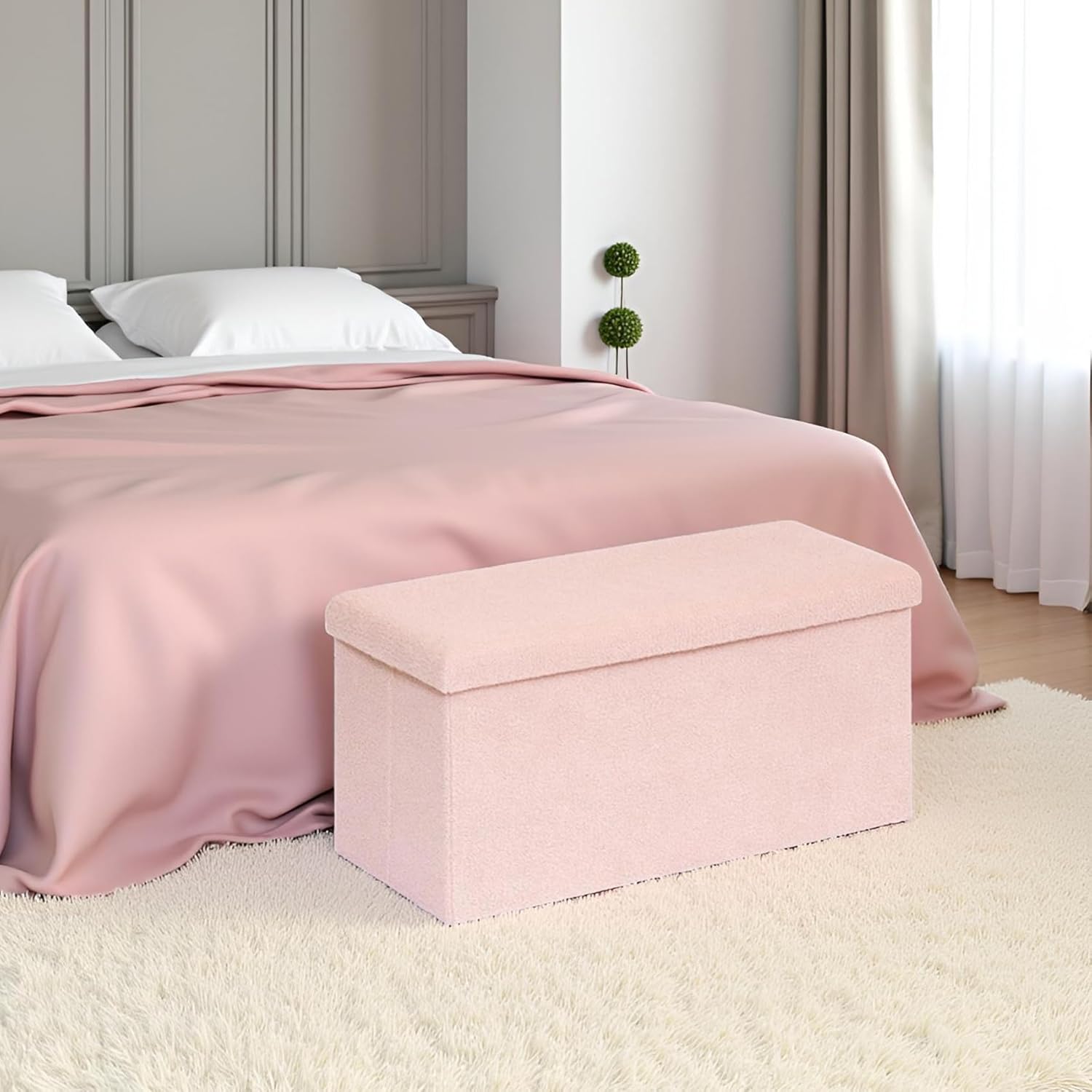 30.1" Storage Ottoman Bench - Foldable Foot Rest Stool Bedroom Bench for Living Room, Entryway-Pink