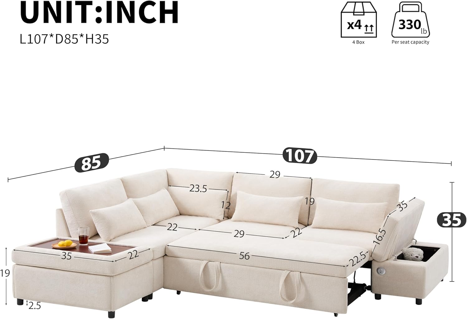 - Product Dimensions : 85"D x 107"W x 35"H