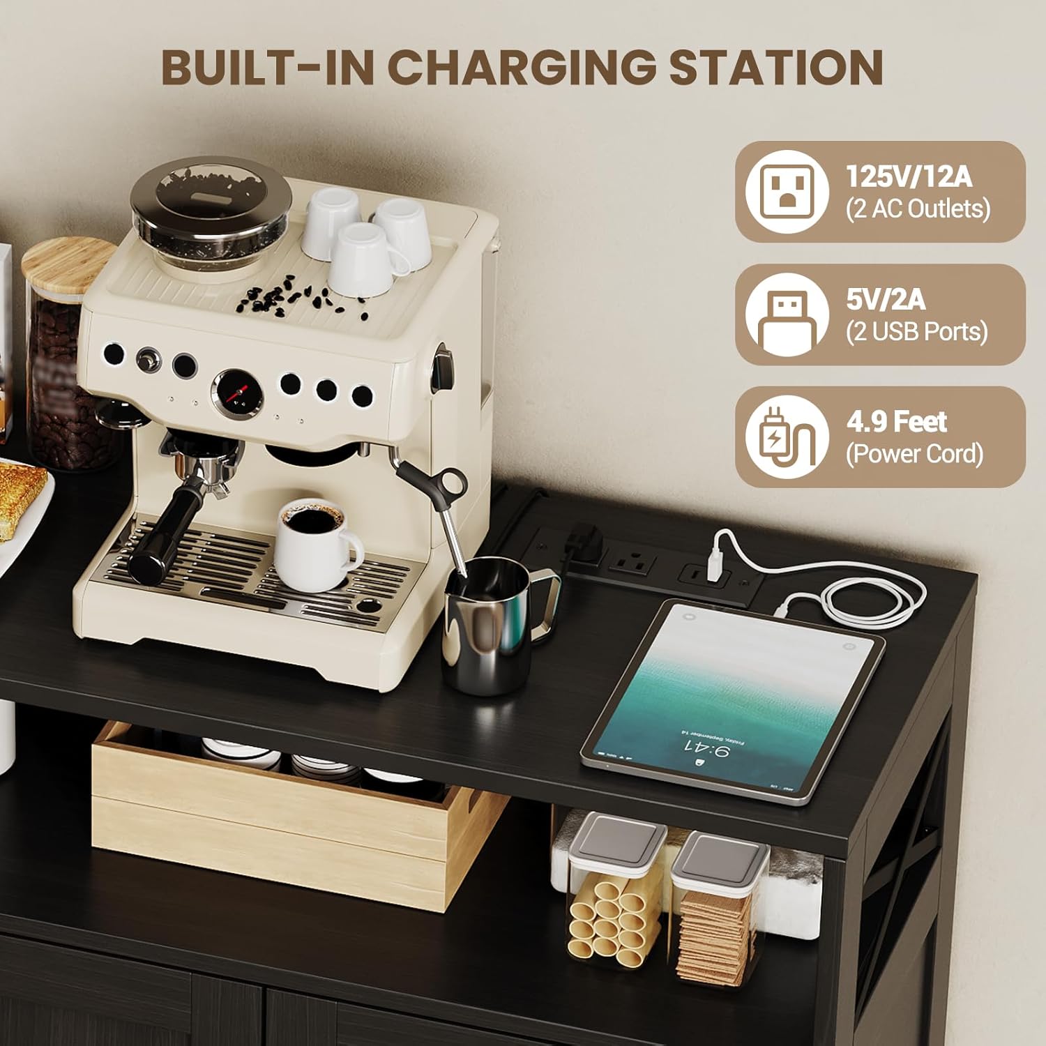 - 🌟[Integrated Charging Hub]---Built into the countertop: 2 AC outlets + 2 USB ports keep coffee makers, phones, and appliances powered within easy reach.