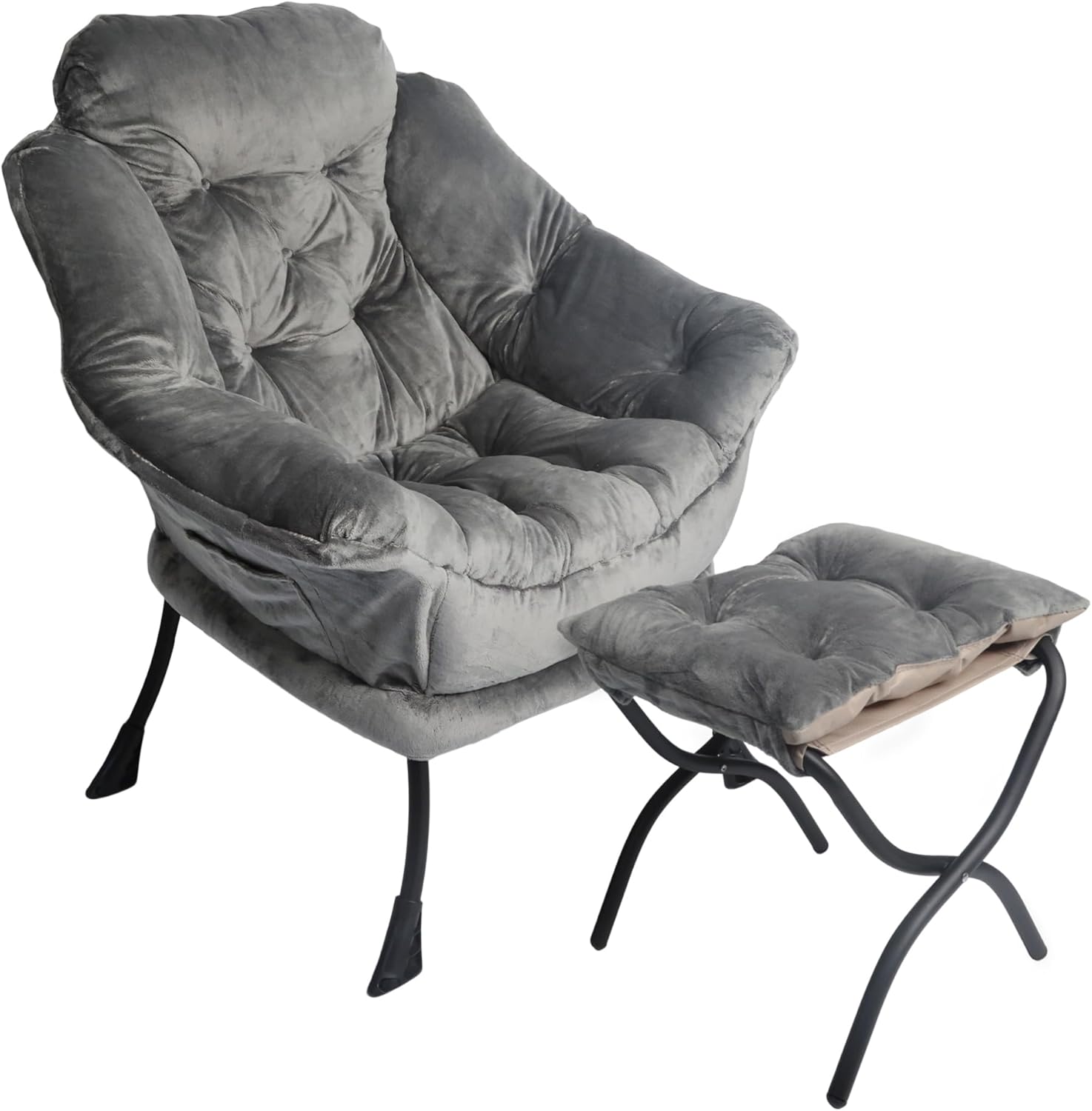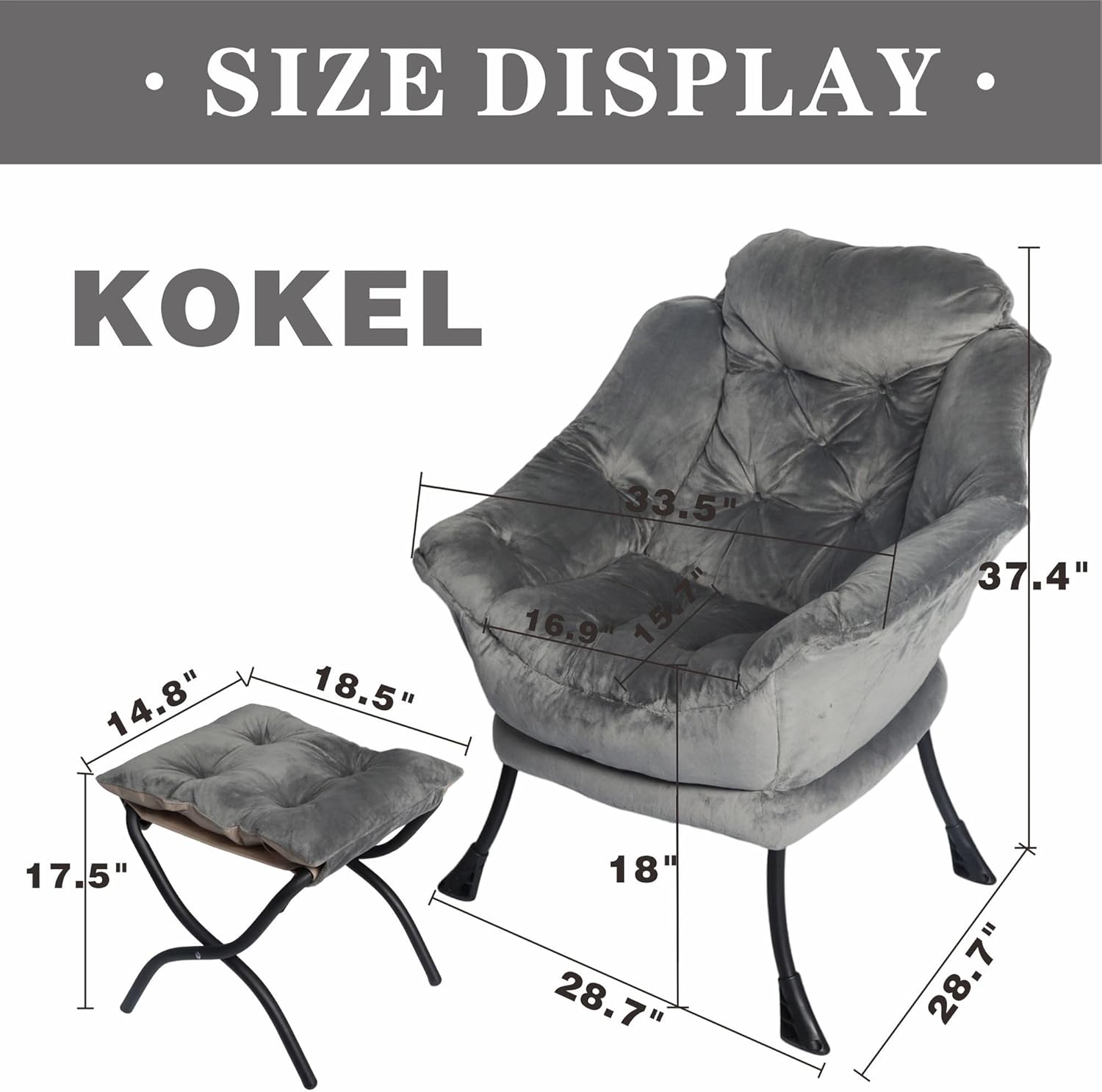 Kokel Lazy Chair with Folding Ottoman,Living Room Chairst (Dark Gray-1118)