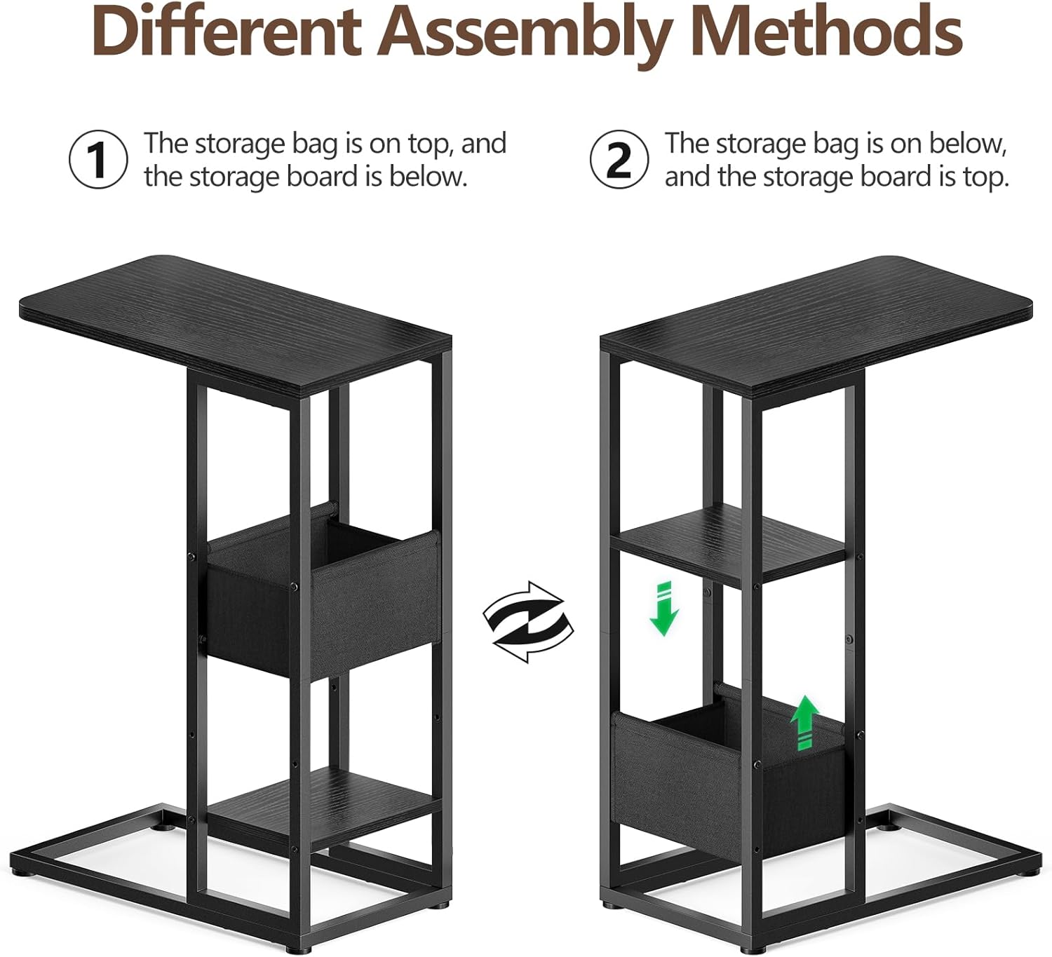 - 【Sturdy & Durable Structure】: C Shaped Side table combines a sturdy MDF board + metal frame, plus a wear-resistant Oxford cloth storage bag.With a more stable structure,the tabletop can hold up to 100lbs, and the middle panel and storage pocket can each support 30lbs. Four adjustable foot pads further improve the table's stability.