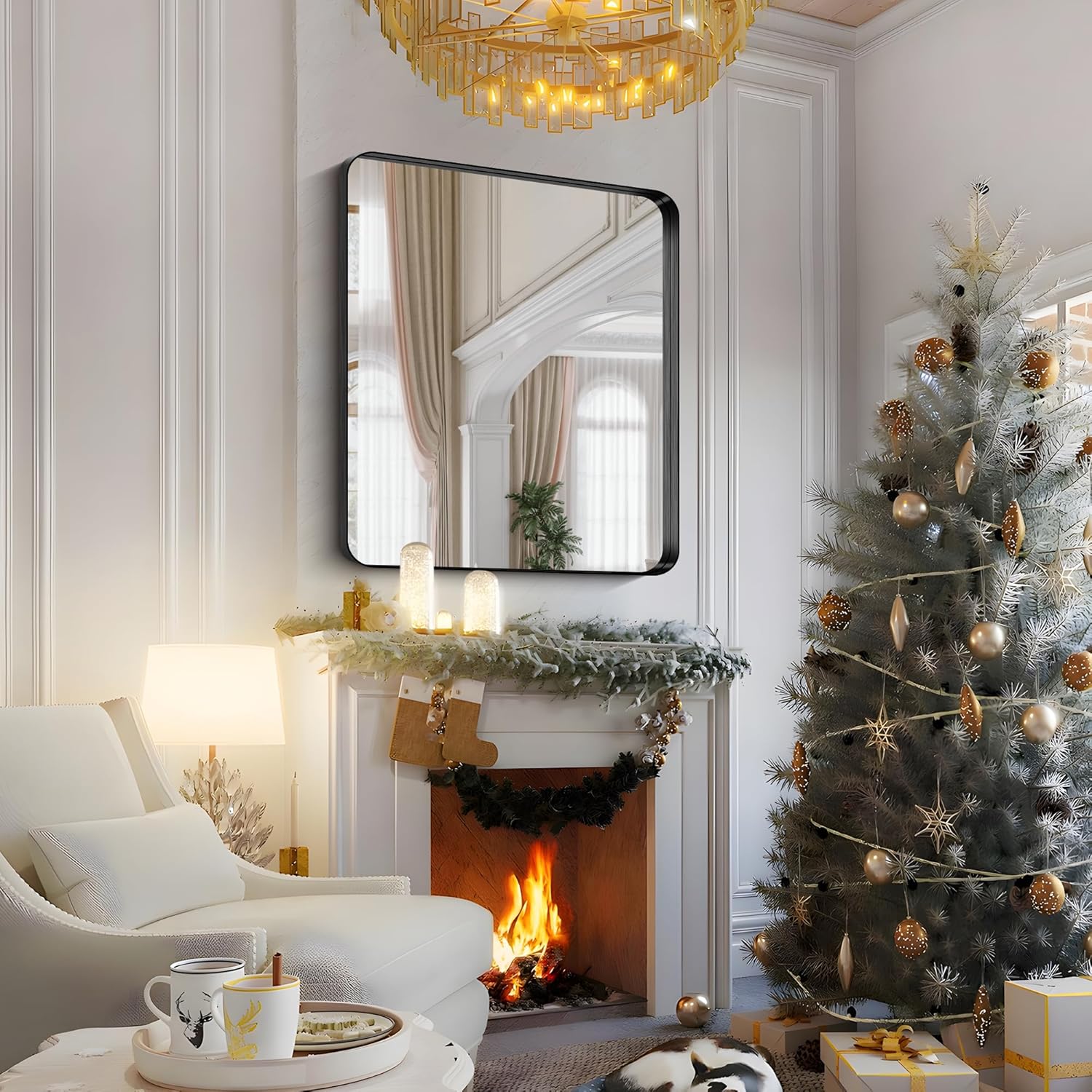 FORBATH 48x40 Inch Bathroom Mirror, Brushed Black Deep Frame Wall Mirror with Rounded Corners, Anti-Rust Tempered Glass for Modern Farmhouse Vanity (Horizontal/Vertical)