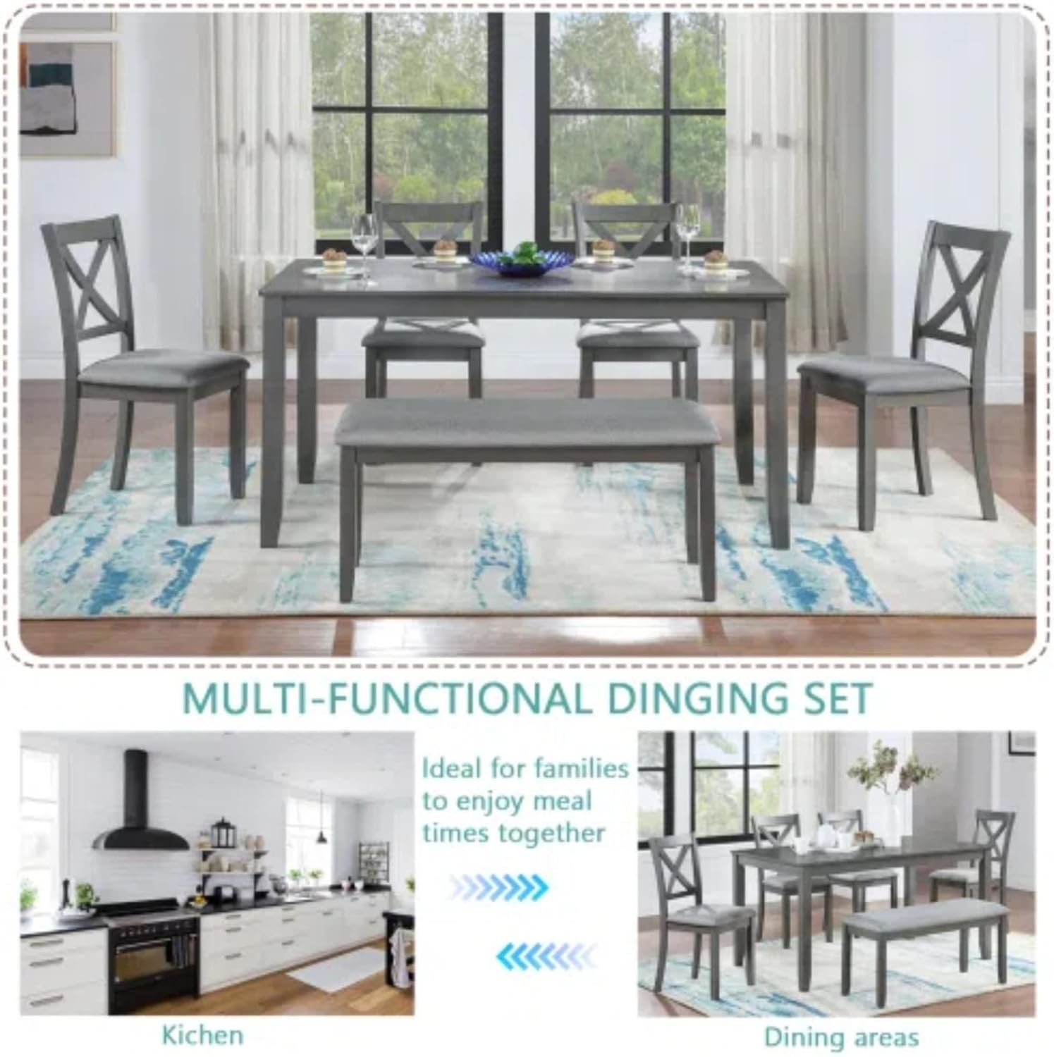 6-Piece Dining Table Set for 4-6 People, Kitchen Set with 4 Upholstered Chairs and One Bench, Living Room Chairs with X-Shape Backrest, Rectangular Wooden Table for Home Bar and Kitchen, Gray