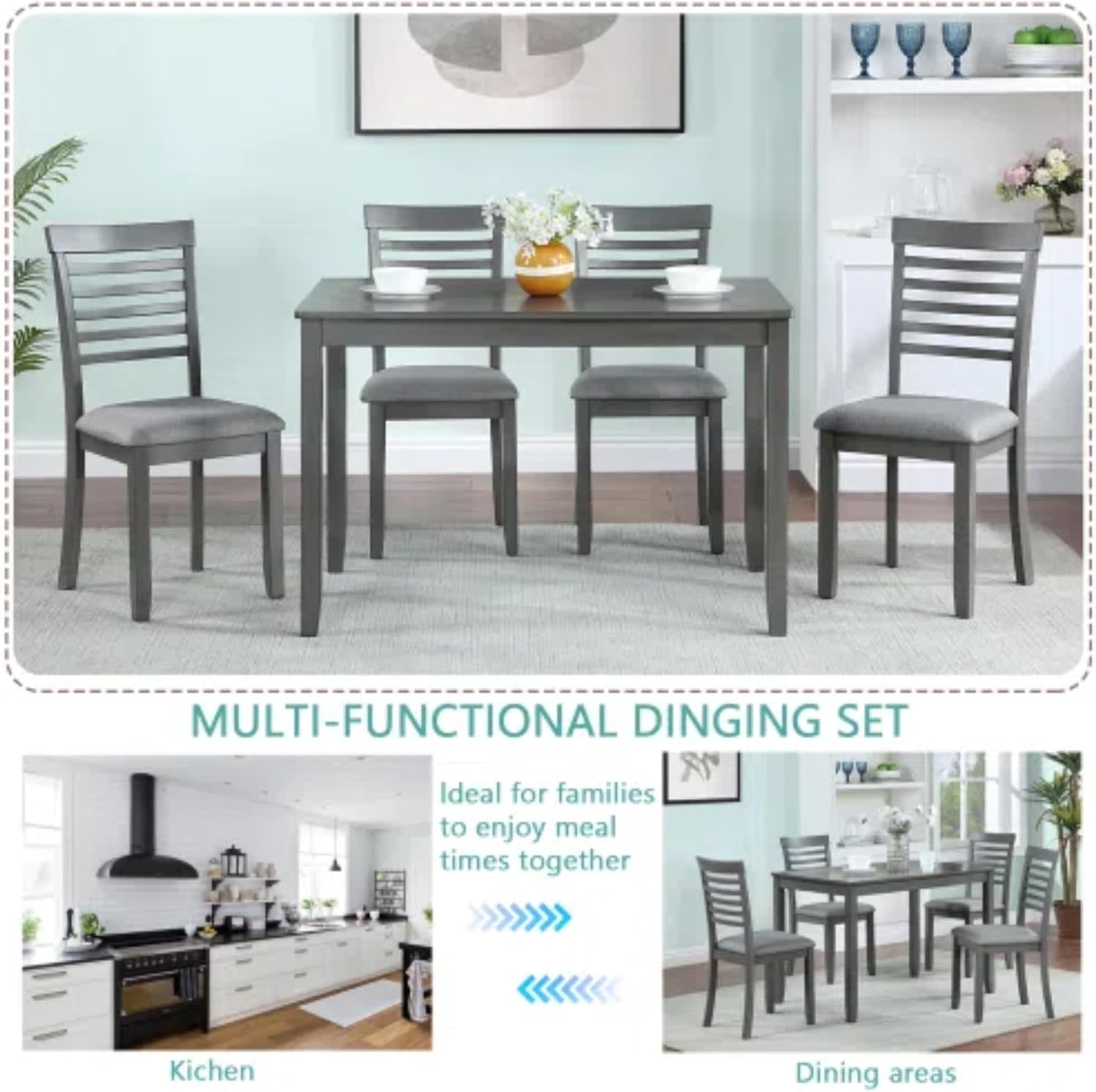 5-Piecern Dining Table Set, Kitchen Set with One Rectangular Table and 4 Upholstered Chairs, Living Room Chairs with Ladder Backrest and Comfortable Seat Cushion, Wooden Dining Furniture, Gary