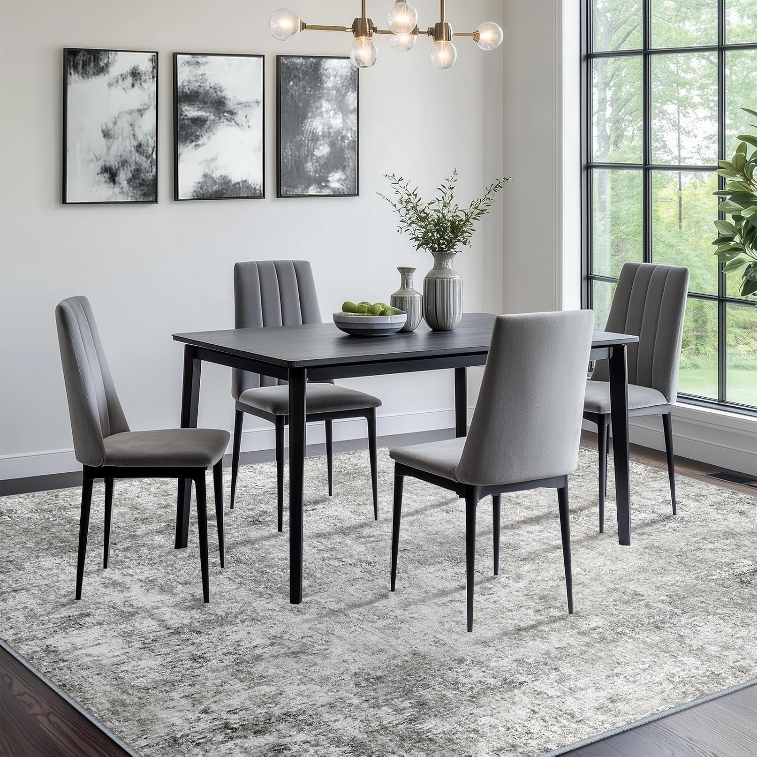 Washable Area Rugs 5'x8' Non-Slip Modern Abstract Soft for Living Room Entryway Bedroom Nursery, Print Pattern, Gray White Grey