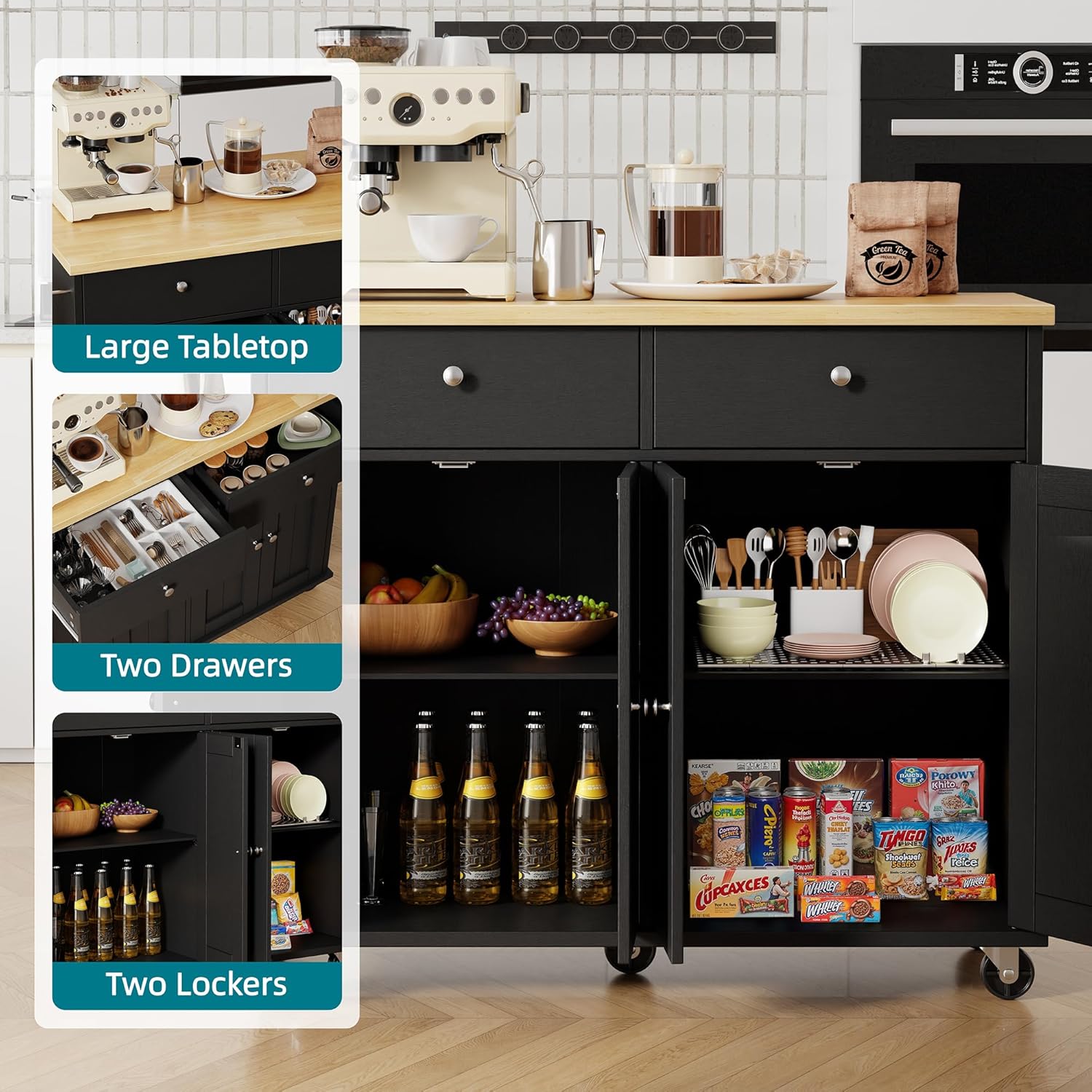 - Universal Rolling Wheels: Smooth-rolling wheels allow easy relocation to any room, while locking mechanisms secure the island in place. Keep essentials handy wherever you work, whether in the kitchen, dining area, or entertaining space.