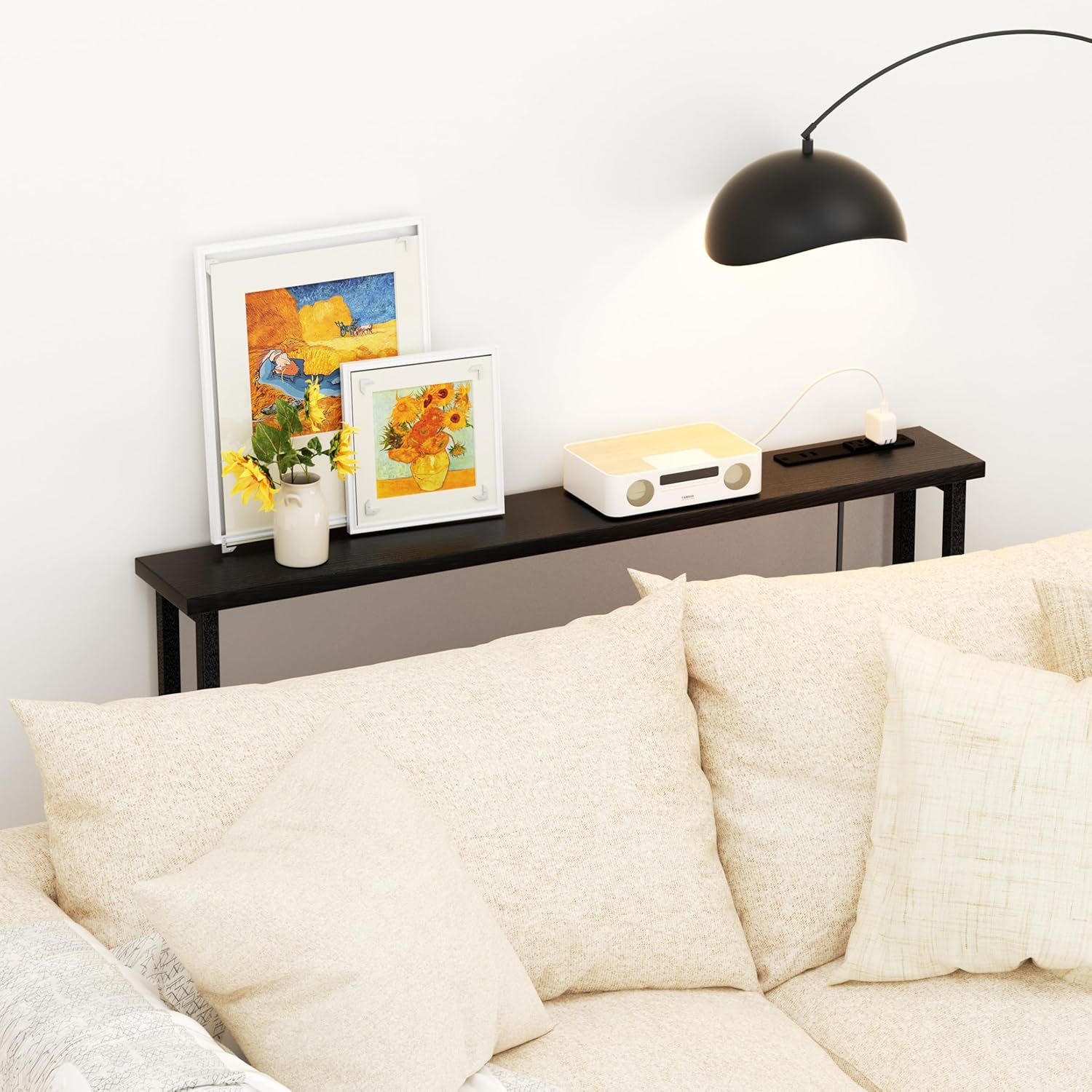 - 【Perfect for Narrow Spaces】The long and slim design makes it an ideal space-saver behind couches, along hallways, or under windows. Its modern black look pairs well with minimalist, industrial, or modern décor.