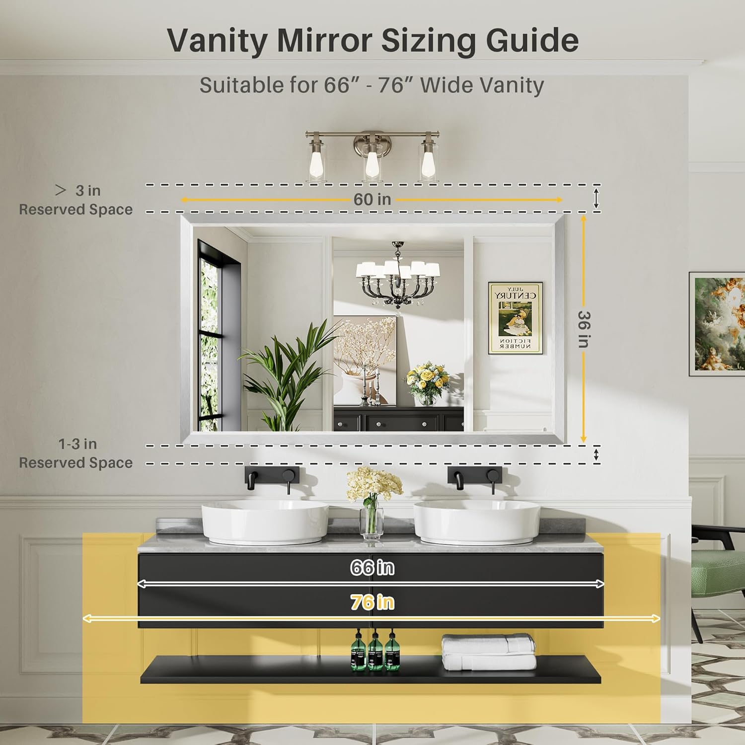 - 【Easy to Install】The modernized mirror comes with two Z-bar wall brackets, it's easy to install the mirror and you can choose to hang the mirror vertically or horizontally depending on the specifications of your bathroom. The bracket is sturdy enough to support the weight of the mirror.