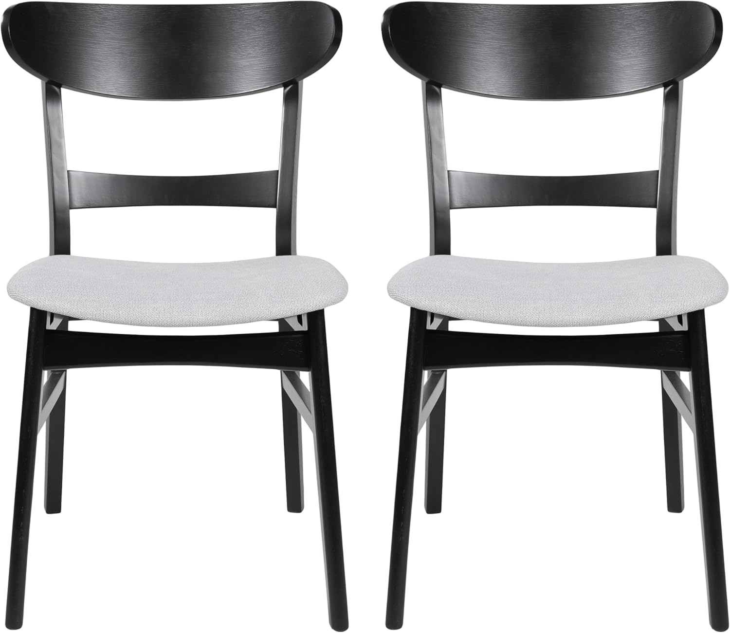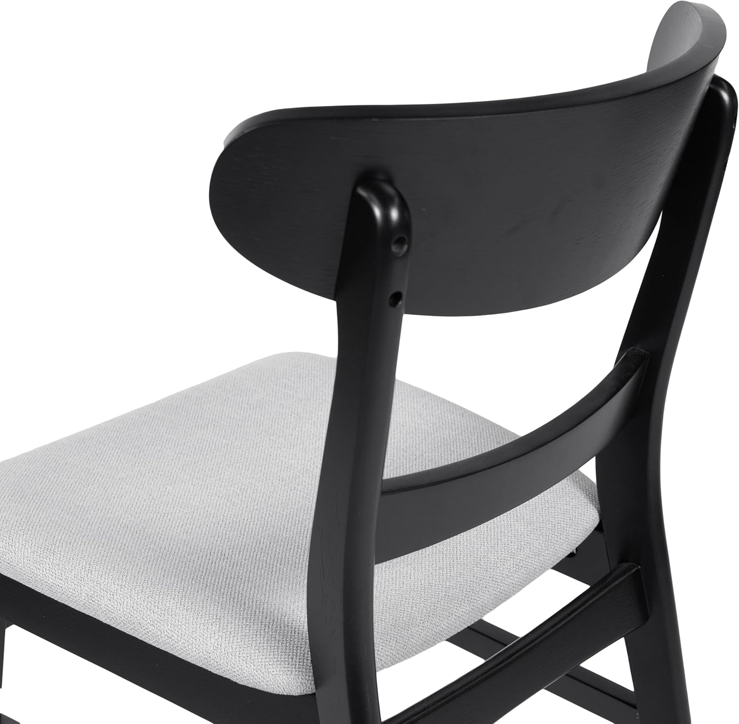 Set of 2 Solid Wood Dining Chairs, Fabric Upholstered Seat Mid-Century Modern Kitchen Furniture for Living Room, Light Gray+Black