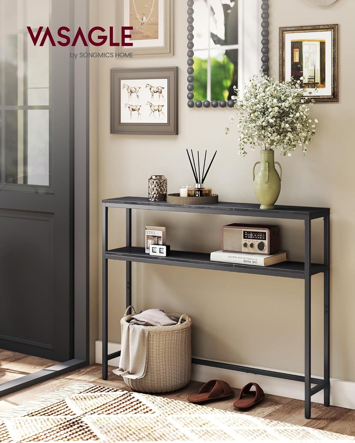 VASAGLE Console Table, 2-Tier Narrow Sofa Table with 2 Shelves, 7.9 x 39.4 x 31.5 Inches, for Living Room, Hallway, Entryway, Charcoal Gray and Ink Black ULNT131B22V1