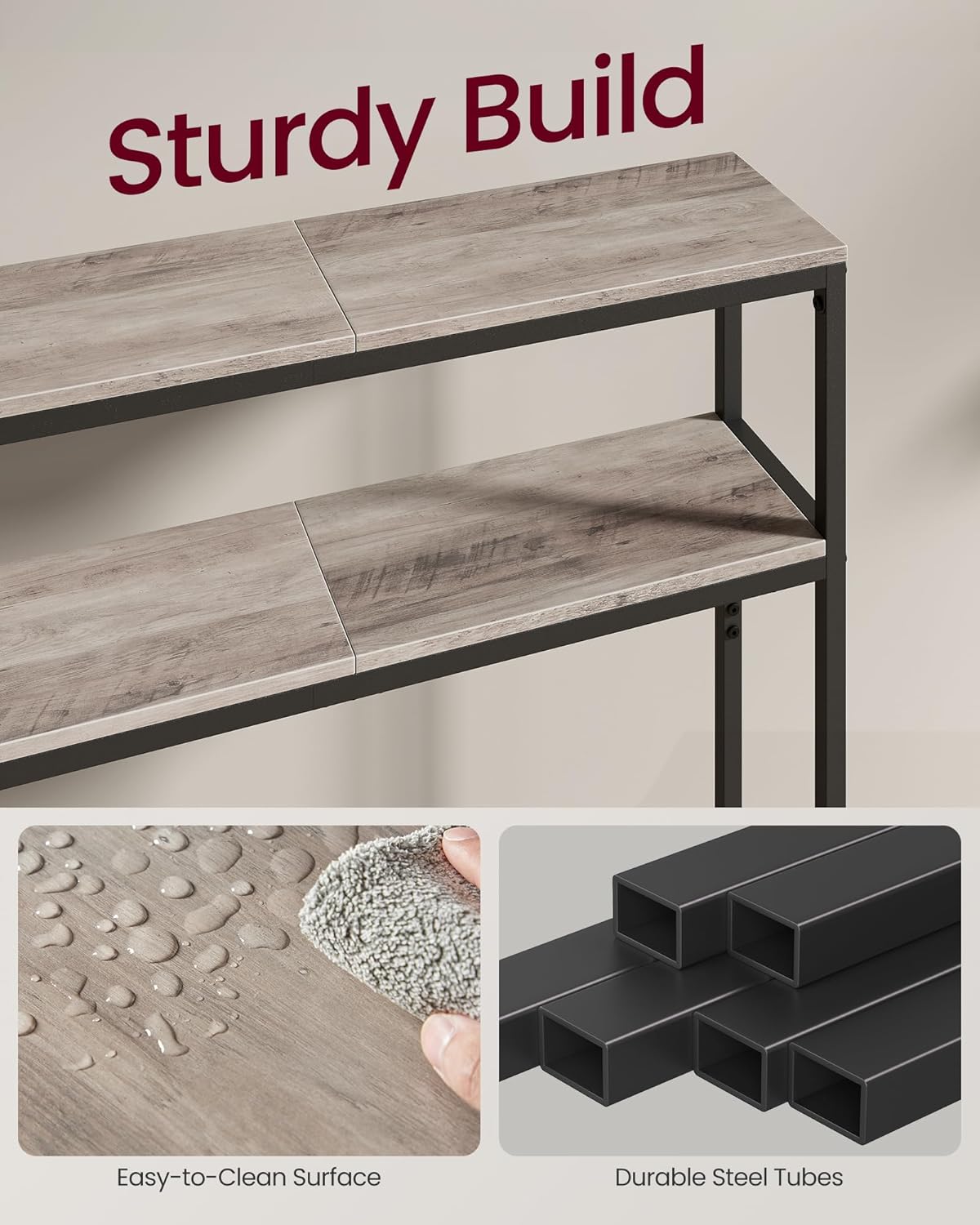 VASAGLE Console Table, 2-Tier Narrow Sofa Table with 2 Shelves, 7.9 x 31.5 x 31.5 Inches, for Living Room, Hallway, Entryway, Heather Greige and Ink Black ULNT130K02V1