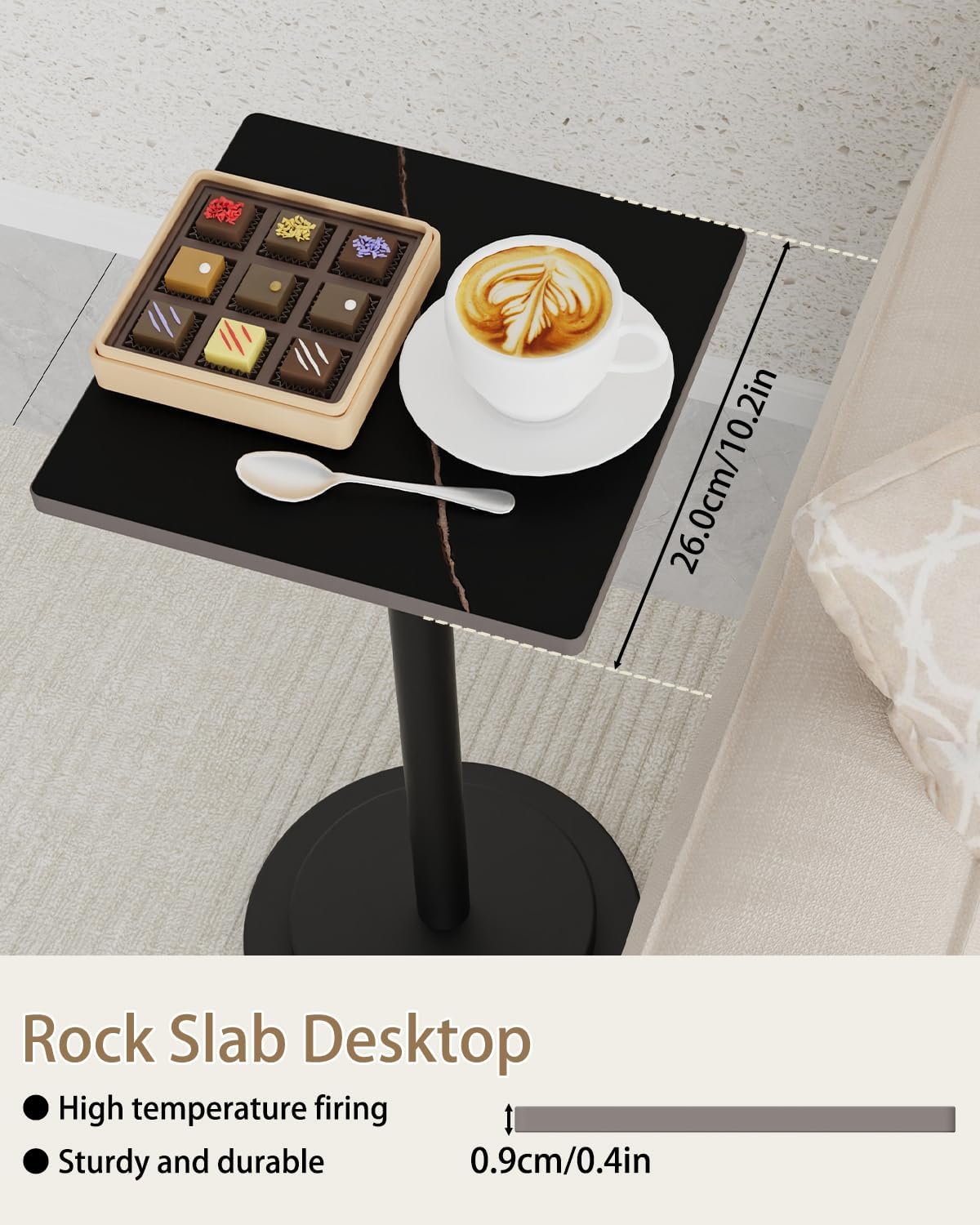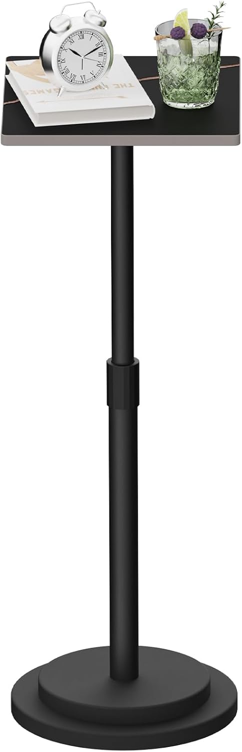 Versatile End Table with Metal Base, Height Adjustable, Vintage Square Indoor Metal Plant Stand, for Sofa, Bedside Small Couch, Living Room and Bedroom, 1 Pack, Black, GBZ001SB-1