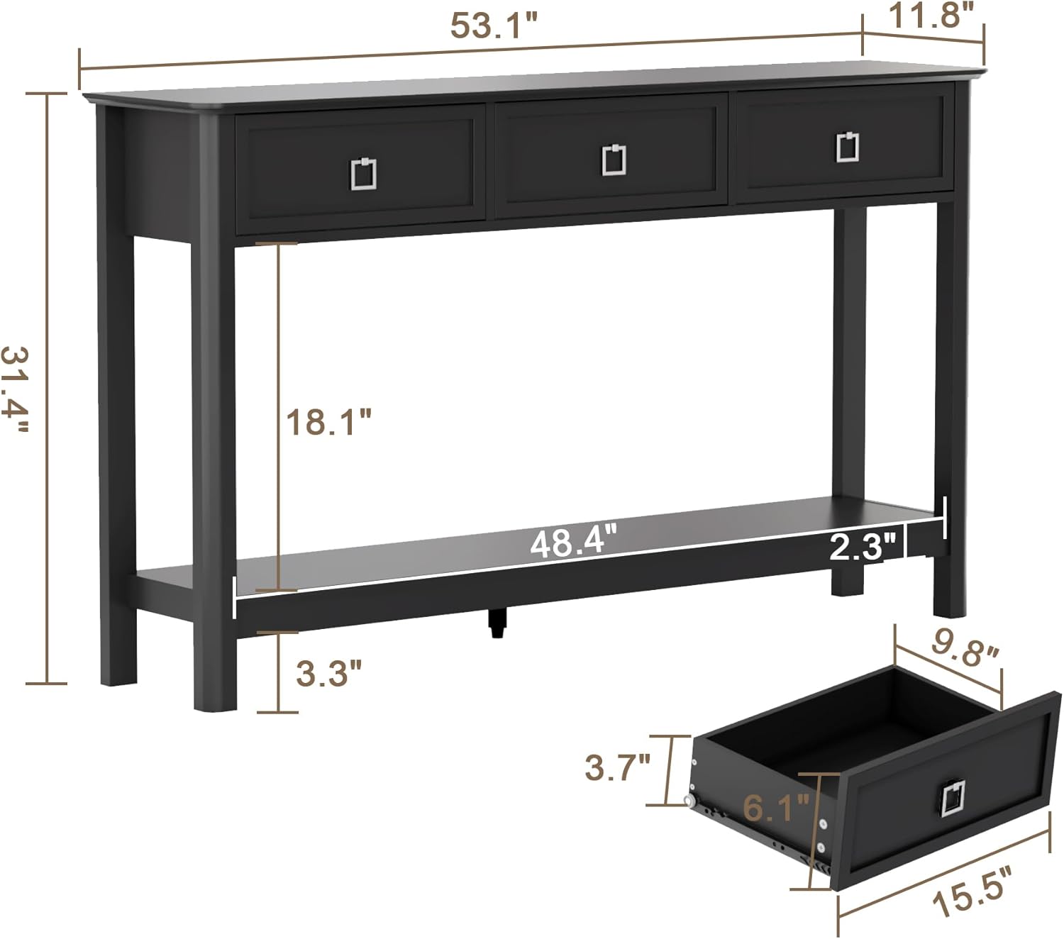 - 【Longer Size & Storage Space】This console table measures 53.1'' in length and features three spacious drawers and an open bottom shelf. The double-layer design provides ample storage and display space
