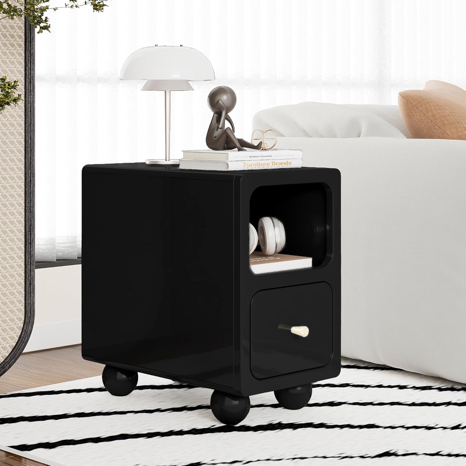 - 【Unique Design Base】 There are four round brackets at the bottom of the night stand, which not only provide solid support for the cabinet, but also bring a unique visual effect. This design not only increases the stability of the cabinet, but also adds a modern touch to its overall shape