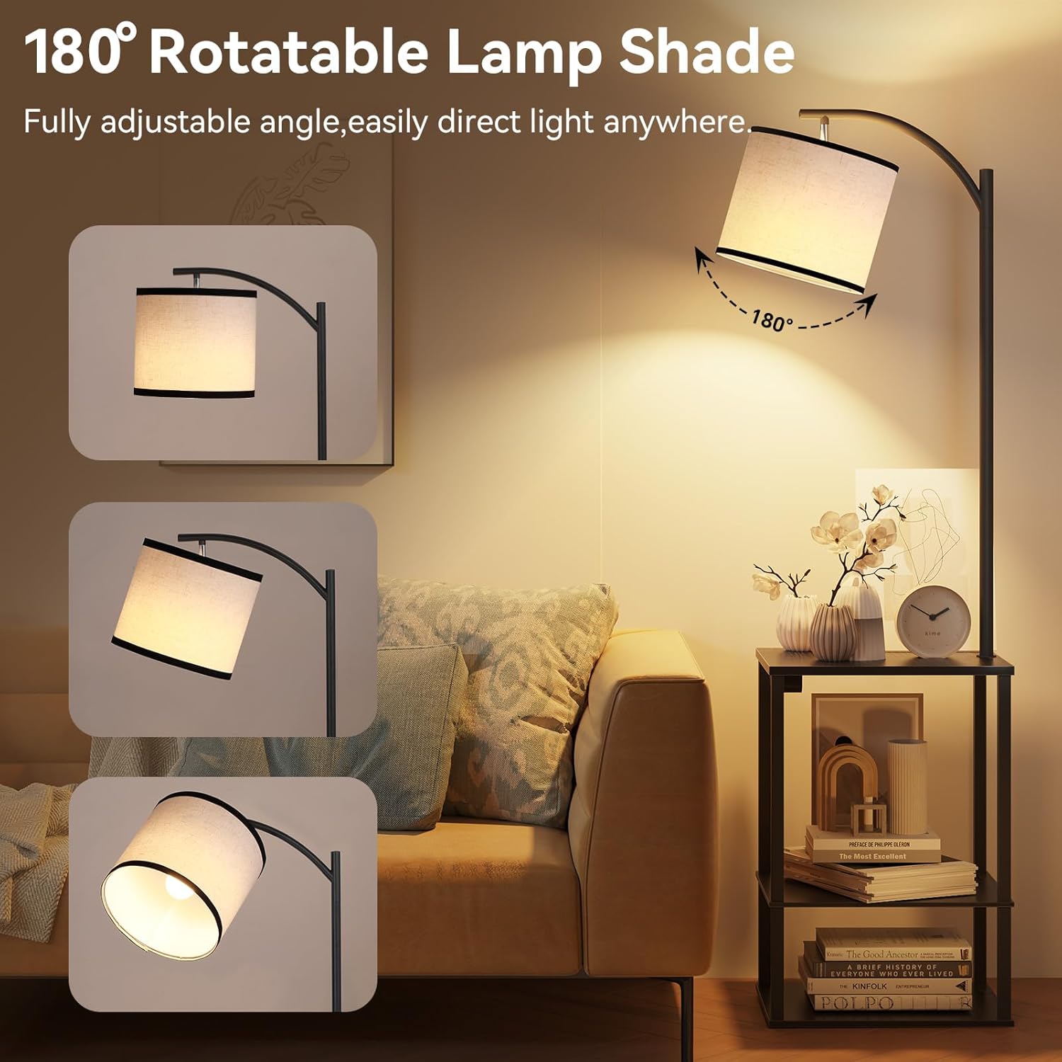 - 3 Color Temperature Floor Lamp: This floor lamp with shelves includes a 9W, 800-lumen energy-efficient E26 LED bulb. This LED floor lamps bulb is 3 color temp: 3000K/4000K/6000K. Equipped with a non-dazzling linen lampshade, it emits gentle light that’s easy on the eyes and reduces eye strain, which is perfect for both lighting and helping decorate your space. Easily switch color temperatures manually to create the perfect ambiance for different scenes.