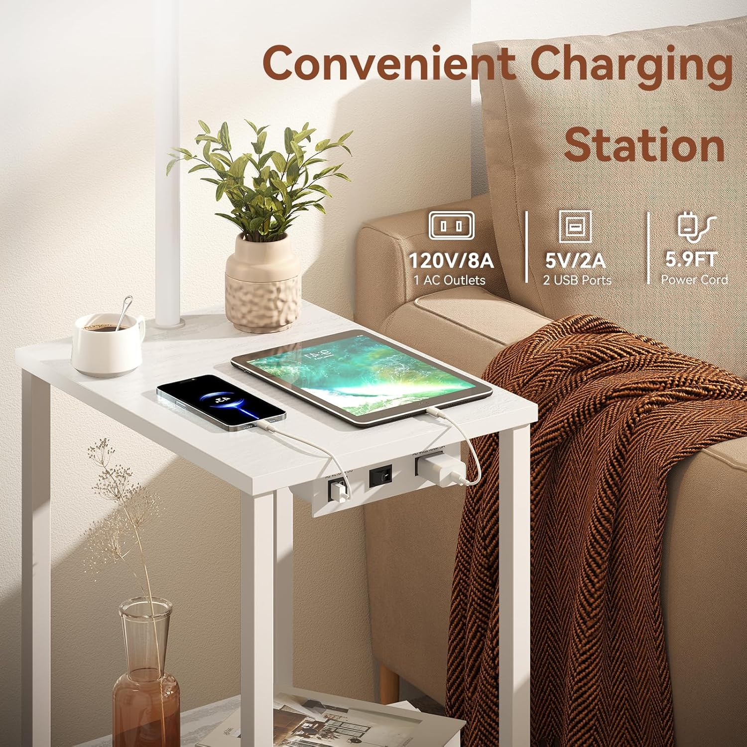 SUNMORY Floor Lamp with Table, End Table for Living Room with Lamp, Shelves Side Table with Charging Station(USB & AC Port), 3 Color Temperature LED Bulb, Modern Nightstand Lamp for Bedroom, Office