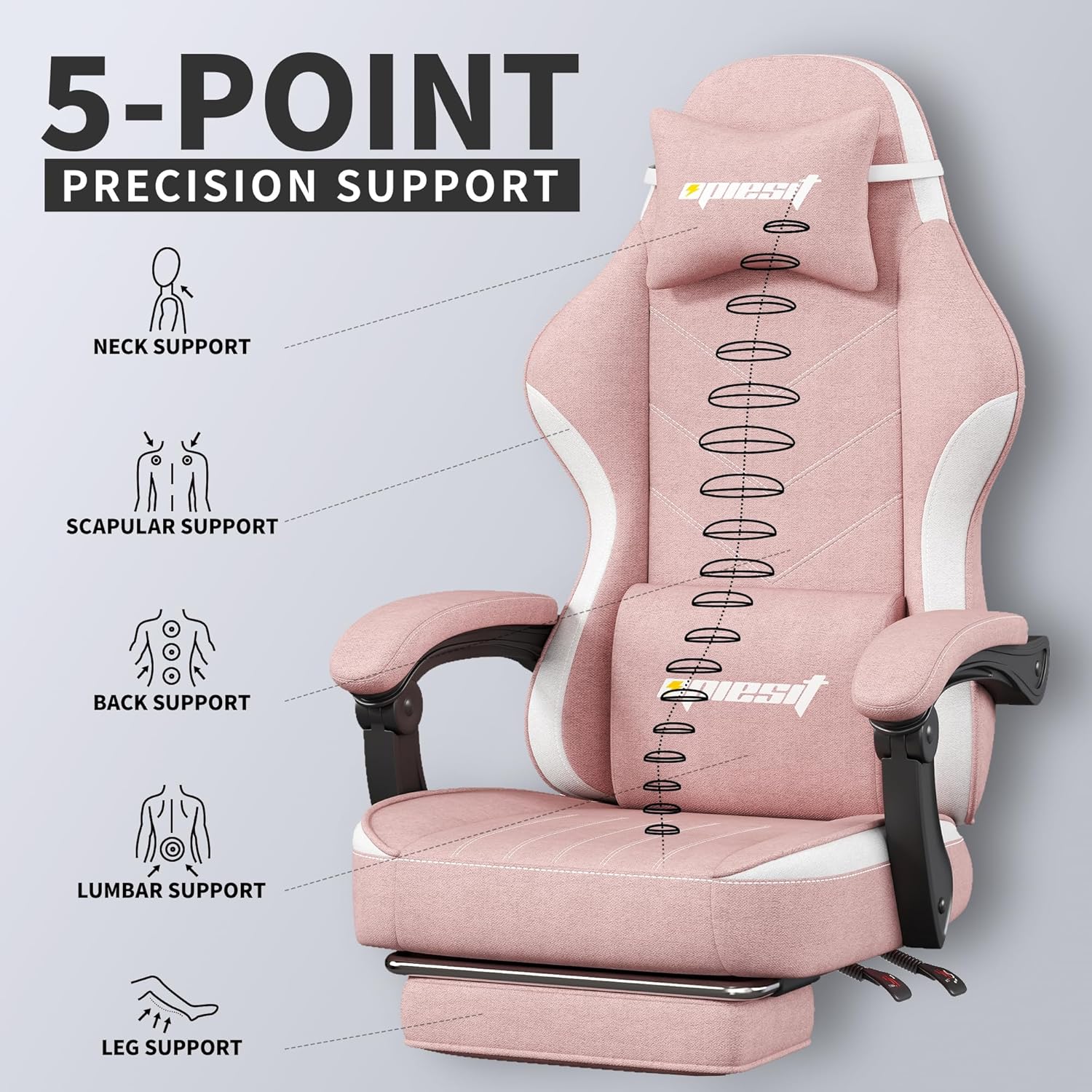 Gaming Chair,Fabric Computer Chair with Pocket Spring Cushion,400 lb Load Capacity,Ergonomic Office Chair with Footrest,Height Adjustable Video Gamer Chair with Lumbar Support (Pink)