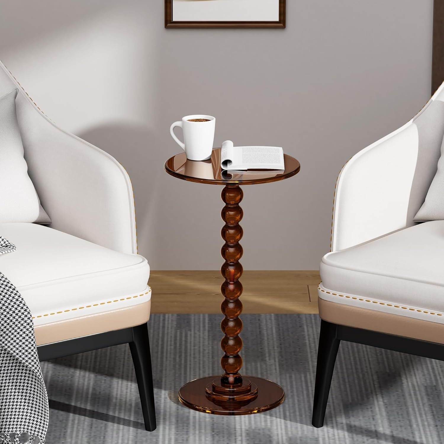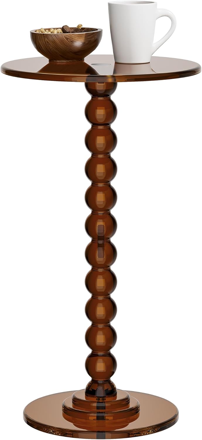 Acrylic Side Table, End Table Round Top with Solid Post for Living Room, Bedroom, Balcony, Easy Assembly (Clear) (Pedestal, Dark Brown)